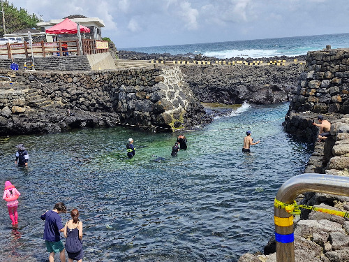 이렇게 포구 방파제 안쪽으로 용천수와 바다가 만나는 풀장이 만들어진다.
