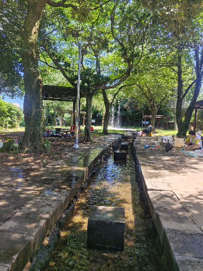 계곡 위쪽으로 돗자리를 깔고 쉬거나 발을 담그며 앉아 있을 수 있는 공간이 있었다.