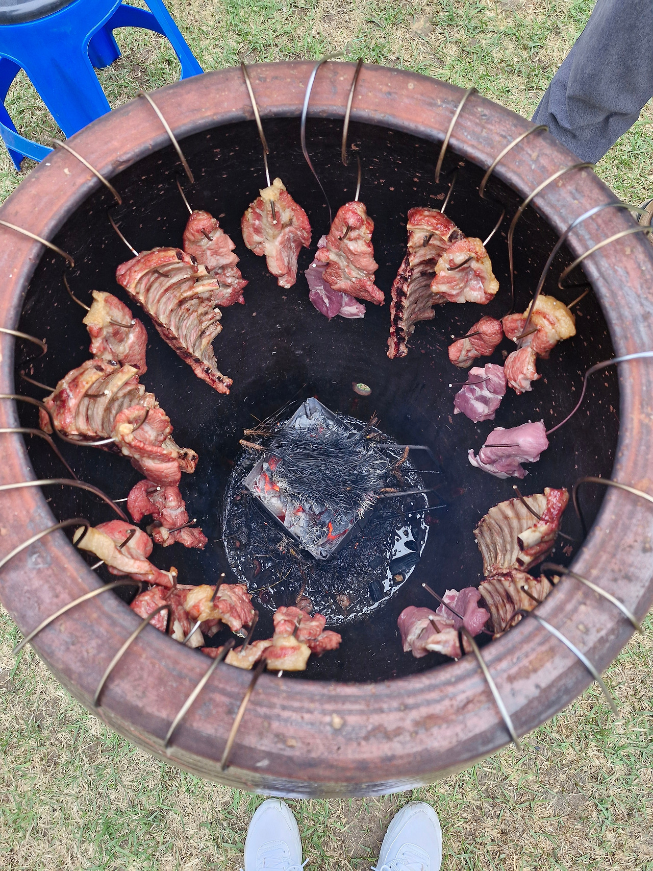 고기를 어디에 굽나 했더니 마당 한가운데 있는 큰 항아리에 굽는 거였다.