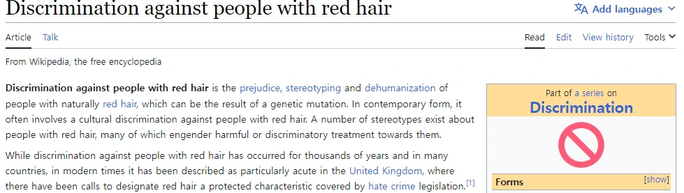 붉은 머리가 차별받았던 것에 대해서는 당신이 옳다. 생각해 보자. 아리엘 이전, 붉은 머리를 한 주연급 캐릭터라는 개념이 성립할 수 있었는지. 아리엘은 사실상 붉은 머리를 가진 최초의 주연급 캐릭터였다.