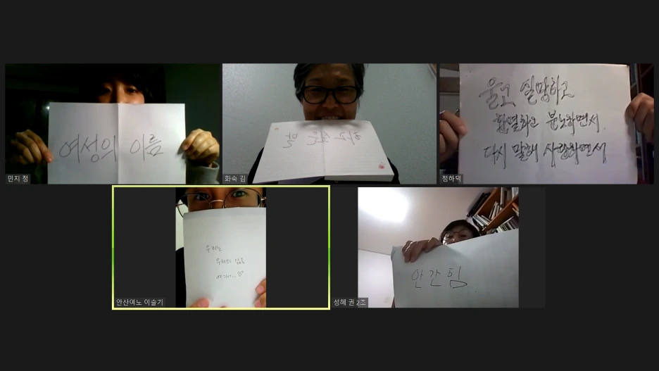 나는 복받은 사람이야. 처음 시작할 때만 해도 여성노동자회니까 페미니즘 토론은 엄청 인기일 줄 알았어. 그러나 시간이 지날수록 인정하게 됐어. 우리 사회에서 페미니즘은 고사하고 한 달 책 한 권 읽고 토론하는 게 얼마나 '사치'인지 말이야. 연년세세, 현실 속 여성이란 집에서도 밖에서도 일이 끝나지 않잖아. 살림과 육아와 직장 사이를 종종거리며 오가야 하는 벗들이잖아. 이젠 이프 존재만으로 점점 고마운 맘이야.