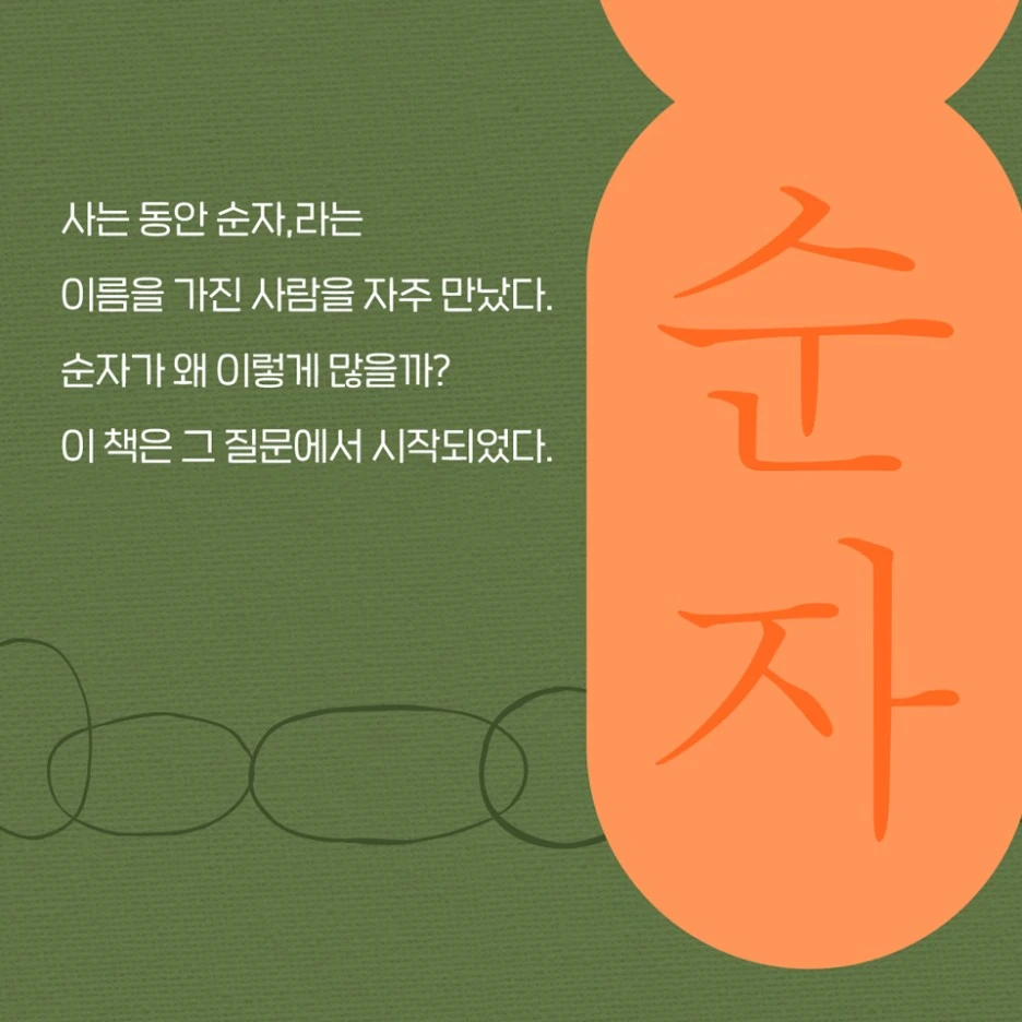 내친김에 인터넷을 뒤져 봤어. 시대별로 가장 흔한 여자 이름 순위 쉽게 찾을 수 있었어. 40년대 가장 흔한 이름이 '순자'였다면 그다음엔 '0숙'이었지. 우째 그렇게도 뻔한 이름을 돌려 막기 했을꼬. 순자 씨가 태어난 40년대와 내가 태어난 60년대, 강산이 두 번 바뀔 시간이 흘렀건만, 그게 대수겠어? 이 땅에 나고 자란 여성이 경험하는 삶이란 알고 보면 거기서 거기다 이거야. 아 참, 내 이름이 어떻게 지어졌나 내가 이야기했던가?