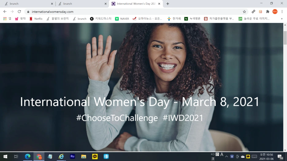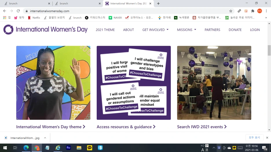 IWD2021 공식 홈페이지 링크했으니 들어가 구경해 봐요. 저도 모녀 연대로 공식 포즈 사진을 찍어봤어요. 캠페인 주제를 벽에 붙여놓고 모녀 나란히 셀카 놀이하며 한참을 즐겼겠죠? 그리곤 SNS에 올렸고요. 한글과 영어가 같이 나오게 한 건 전 세계 여성들과 공유하는 재미를 위해서겠죠? 전 세계가 함께 즐기는 기념일이니까 놓치기 아까운 이벤트 1번에 넣어 봤습니다.
