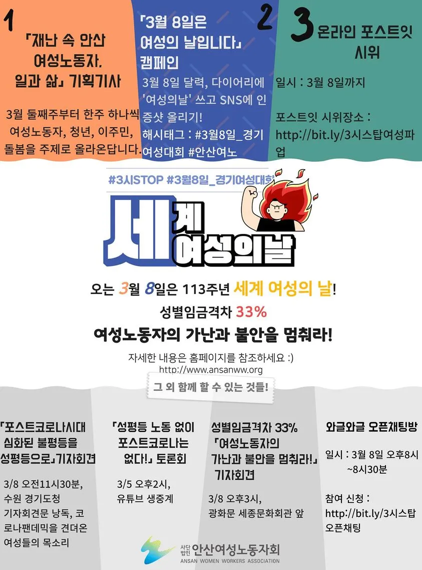 3. 지역 여성 단체들은 3.8 세계 여성의 날을 어떻게 축하할까요? 제가 회원 활동하는 안산의 두 단체만 맛보기로 구경시켜 드릴게요. 이 기회에 지역 여성 단체에 가입해 보는 것도 추천합니다.
