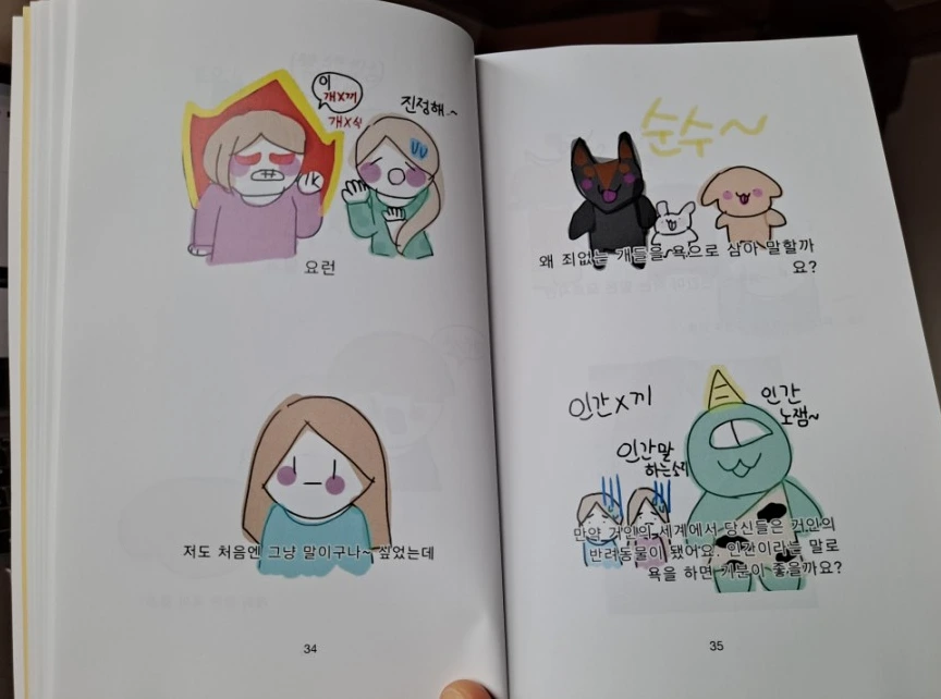 "왜 죄 없는 개들을 욕으로 삼아 말할까요?"