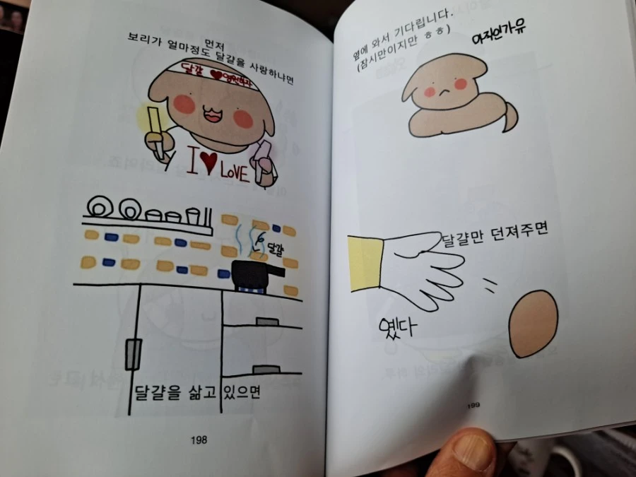 에피소드 10에서 작가는 보리 이야기를 하는 척하면서 실은 자기 속 마음을 보여준다. 초딩이 지는 삶의 무게가 있으니까."보리야 니가 부럽다"라고 말할 수 밖에 없는 이유가 조목조목 이어진다. 우선 보리는 공부 안 해도 되니 부럽다. 걱정 고민거리가 없는 게 부럽다. 똥 싸고 밥 먹고 자면 되니까 부럽다. 죄가 없으니 부럽다. 아무것도 안 했는데 천국 가니까 부럽다.....