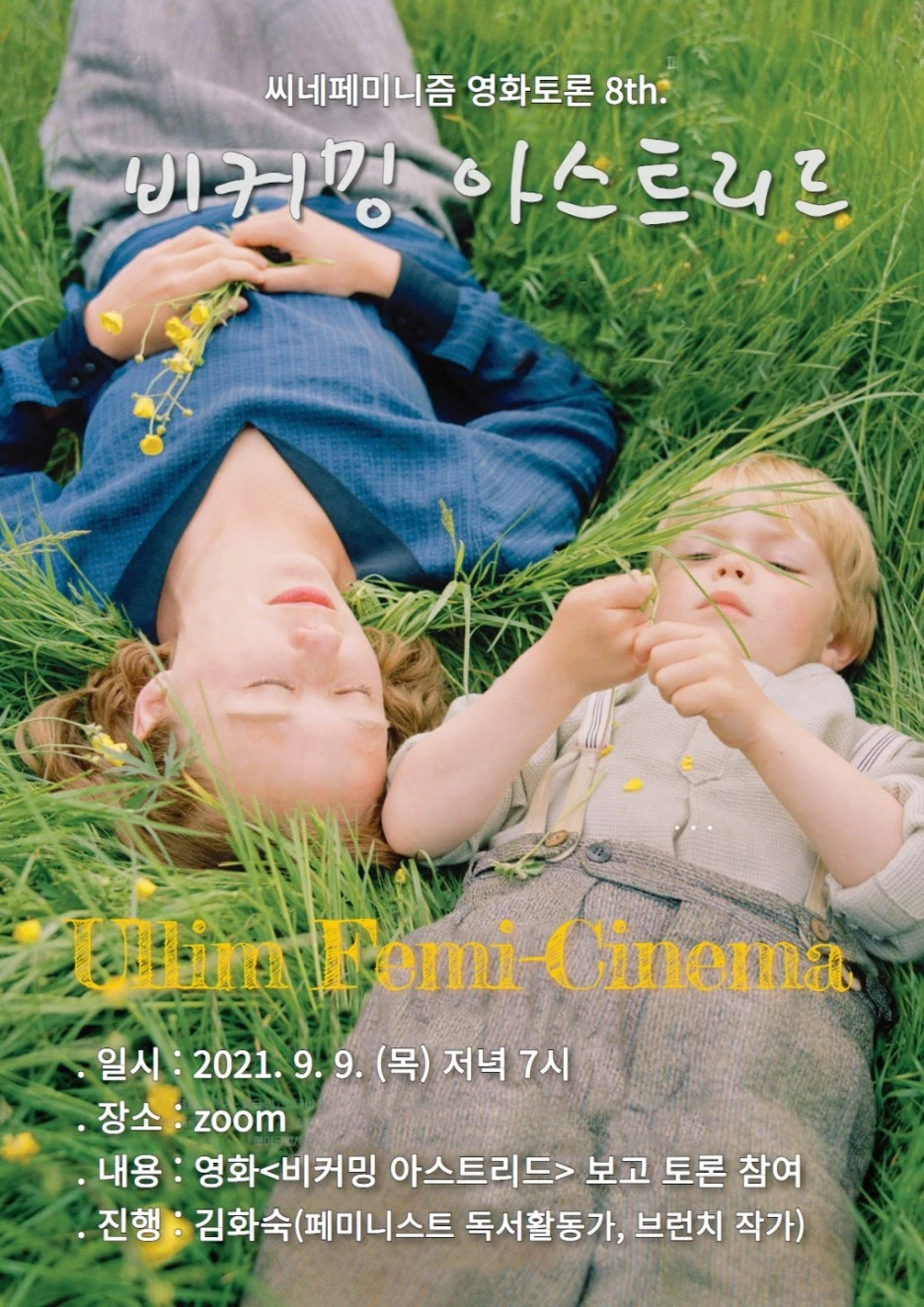 아~~ 씨네 페미니즘의 감동을 끝내긴 아깝다, 이런 목소리가 들렸다. 영화 토론 모임을 후속으로 어떻게 정례화해야 하지 않겠냐는 소리, 고무적이었다. 왜 아니겠나. 이런 영화 토론을 어디서 맛보랴! (다시 자뻑으로!) 마음을 나누고 글을 나누며 마무리해보자. 새 길은 언제나 용감한 사람의 몫. 아스트리드가 그랬듯이 말이다. 이후의 씨네 페미 친구들이 걸어갈 길 또한 기대된다.