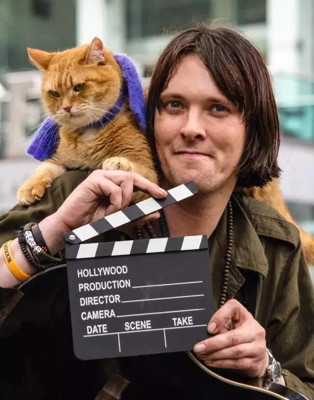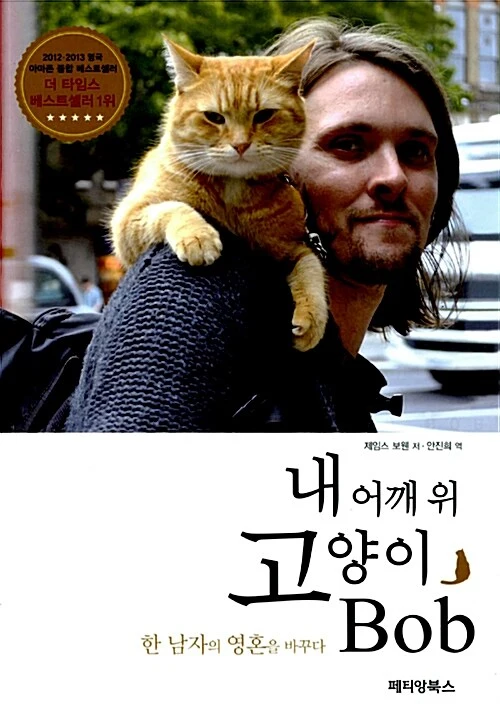 노래 가사 느낌 오지 않아? 고양이 밥이 직접 출연해. 비슷하게 생긴 6마리 고양이와 같이 찍었다는데 밥이 거의 90%를 했대. 제임스가 버스킹을 하거나 노숙인 지원 잡지 <빅 이슈>를 판매할 때면, 스카프를 두른 고양이 밥이 함께야. 제임스가 가는 곳마다 밥이 그의 어깨 위에 있지. 제임스와 밥은 늘 대화하며 뭐든 함께 하는 친구야.