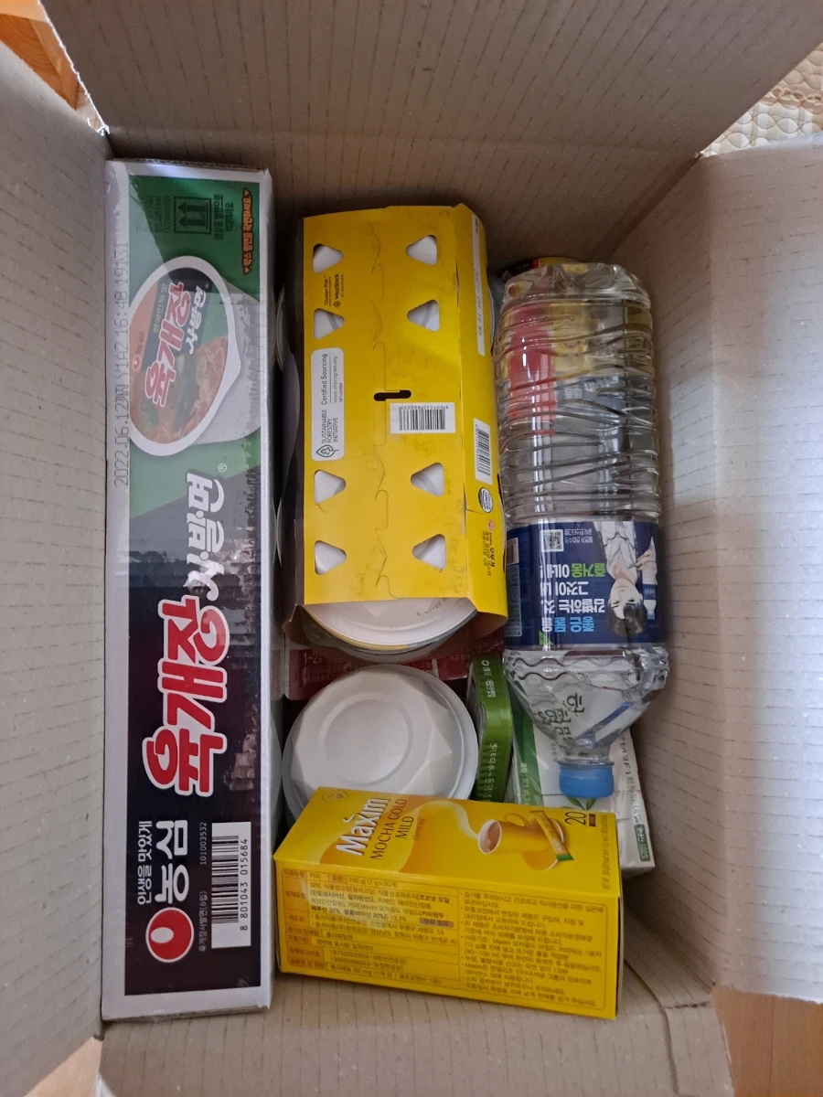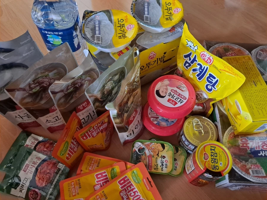 어제 재택치료 확진자를 위한 음식 꾸러미도 왔다. 코로나 시대 늘 그랬듯 비대면으로 문 앞에 놓고 갔다. 제법 크고 무거운 상자라 혼자 집안으로 끄집어들이느라 낑낑대야 했다. 가짓수가 상당했는데 나열해 적어 본다.
