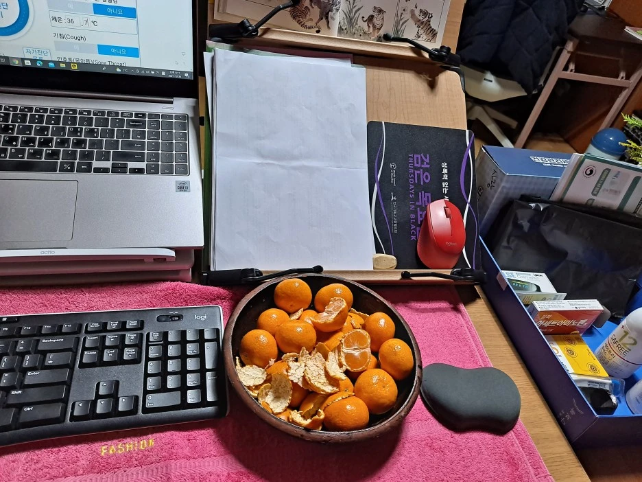재택치료 자가격리 4일 차, 아침에 가뿐하고 상쾌하게 눈을 떴다. 누운 자리에서 내 몸을 이리저리 느껴 봤다. 어디에도 아픈 데가 없었다. 목도 칼칼하지 않고 쑤시는 데도 없고 열감도 없었다. 평소처럼 주전자에 대추와 생강 등을 넣고 차를 끓여 레몬즙 떨어뜨려 두 잔 마셨다. 아차, 아침 체온 먼저 기록하고 차를 마셨어야 했는데, 따뜻한 차 기운 때문에 바로 재면 체온이 높겠다. 그랬다. 37도가 넘었다. 책상 앞에 앉아 인터넷 뉴스를 읽고 책상 정리를 하며 30분쯤 보냈다. 체온을 재니 36.7도였다. 좀 있다 다시 재도 그랬다. 산소포화도와 맥박 역시 정상이었다. 점심에 먹을 들깨 된장국을 끓여 놓고 아침 운동을 했다. 동네 산에 가는 맘으로 두꺼운 패딩까지 챙겨 입었다. 온 집안 창문을 열고 집안을 이방 저방 베란다까지 빨빨대고 걸었다. 심심하면 실시간으로 여기저기 인증 사진으로 안부를 전했다.