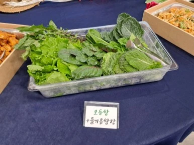 비건뷔페 저녁 식사에 내 취향의 고수며 향신료도 느낄 수 있어 반가웠다. 현미밥과 감자들깨미역국 등 우리집밥 같아 좋았다. 옥에 티는 내가 추구하는 자연식 순식물식과는 결이 다른 점이었다. 콩단백 비건치즈 등 가공품이며 쌈 외엔 모두 조리된 메뉴란 게 그랬다. 재료가 동물성이 없다는 것만 능사가 아니라서다, 더 지켜볼 일이다. 기후위기를 생각해서라도 단순하게 만들어 먹는 자연식 순식물식이 내겐 맞는 거 같다.