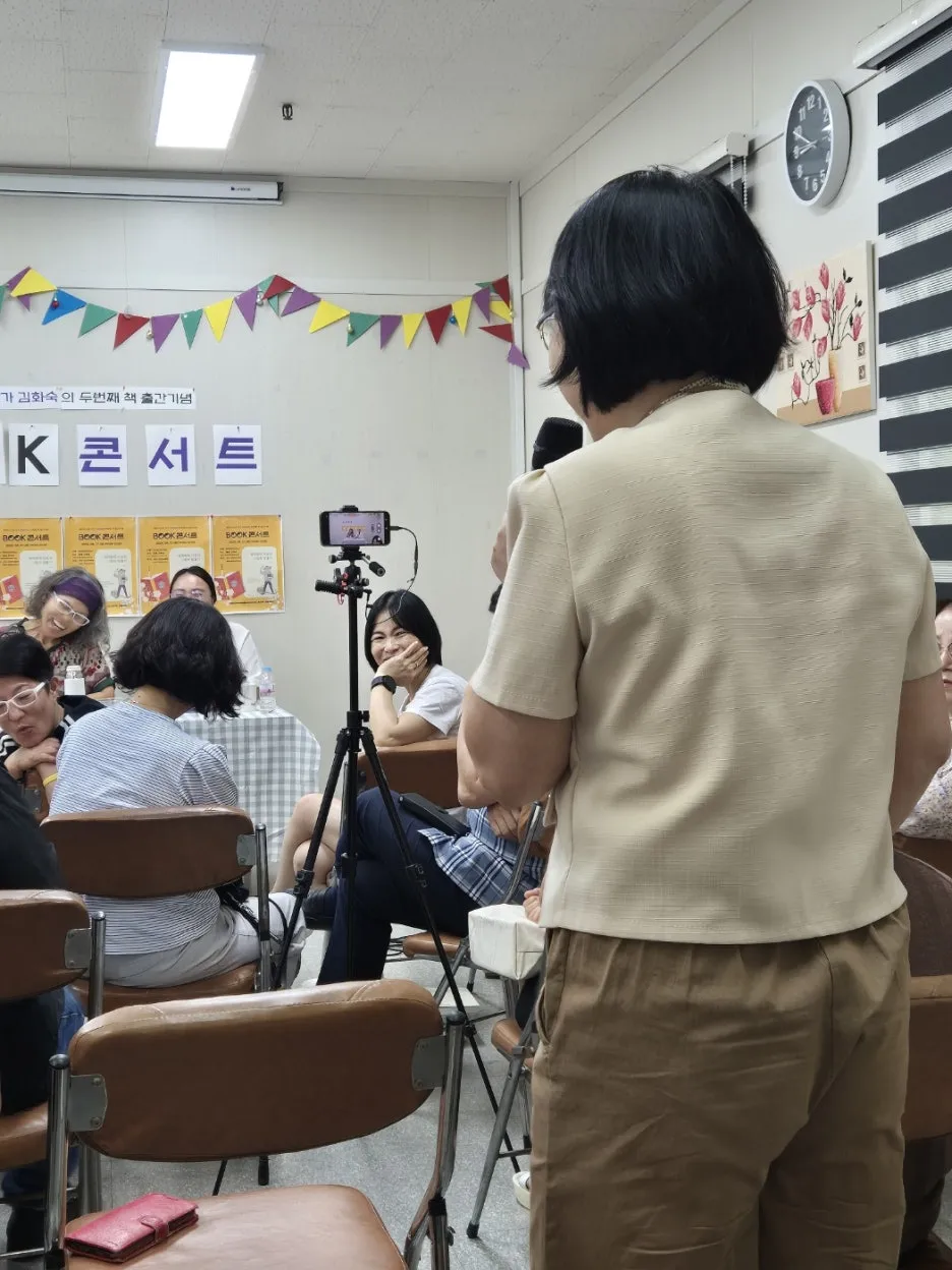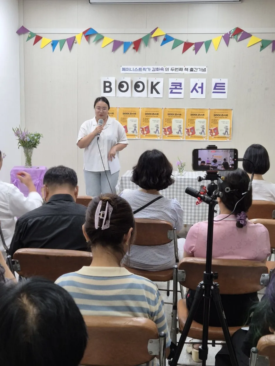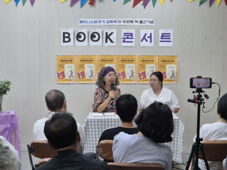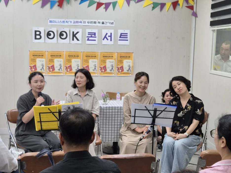 "오늘 북 콘서트는 화숙의 뜻을 반영해 평어로 진행하게 됐어. 내가 화숙을 알고 지낸 지난 6년간 우리는 처음부터 화숙 연선 이름 부르고 평어를 쓰고 있어. 나도 처음엔 어색했는데 지금은 너무 좋아. 평등이 이런 거로구나 맛보고 있어. 반말 모드 괜찮지?" 모두의 박수 속에 내가 등장했다. 오늘의 자리를 마련해 준 여성 단체 벗들께, 함께 노래해 준 보리차, 장구지도해준 최문성, 그리고 이 자리에 와준 독자들 모두에게 뜨겁게 감사 인사하며 시작했다.