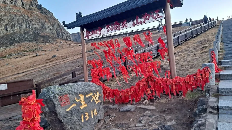 백두산 서파 1,442계단을 통해 천지에 올라가다 바로 이 "一生一世 1314'가 새겨진 돌을 만났다. 일생일대의 날이라고 축하하는가? 바위에 붉은 글씨로 새겨둘 만큼 대단한 의미의 네 글자. 어렴풋이나마 한 번뿐인 내 인생을 응원하는구나, 백두산 천지에 오르는 사람들을 향한 박수로 생각하기로 했다. 그러나 확인 없이 지나칠 수 없었다. 바위 주변에 나부끼며 매달린 붉은 것들이 자꾸 말을 걸어왔기 때문이다.