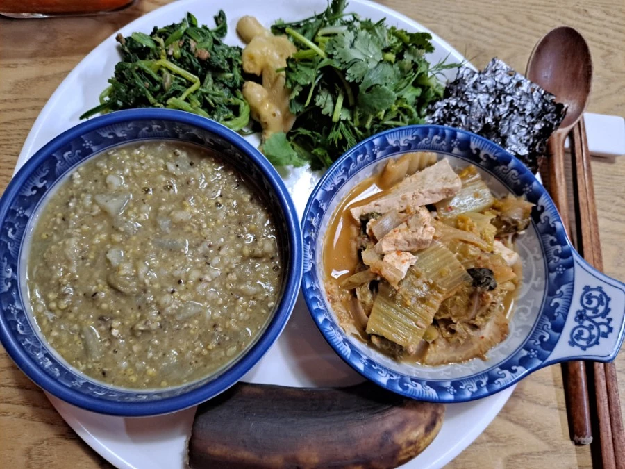 6년 만에 하는 단식과 보호식은 즐거웠다. 그동안 더 알게 된 내 몸과 읽은 책이 잘 이끌어주었다. 날마다 나는 몸 이야기를 글로 썼고, 비슷한 고민을 하는 사람들과 연결되는 기쁨도 맛보았다. 1일 2식과 '한 접시로 끝내기'를 지켰다. 아침은 효소수 또는 차. 점심 저녁은 죽과 채식단으로 40~50분간 씹어 천천히 먹었다. 보호식 기간에도 소식이 가장 어려웠다.
