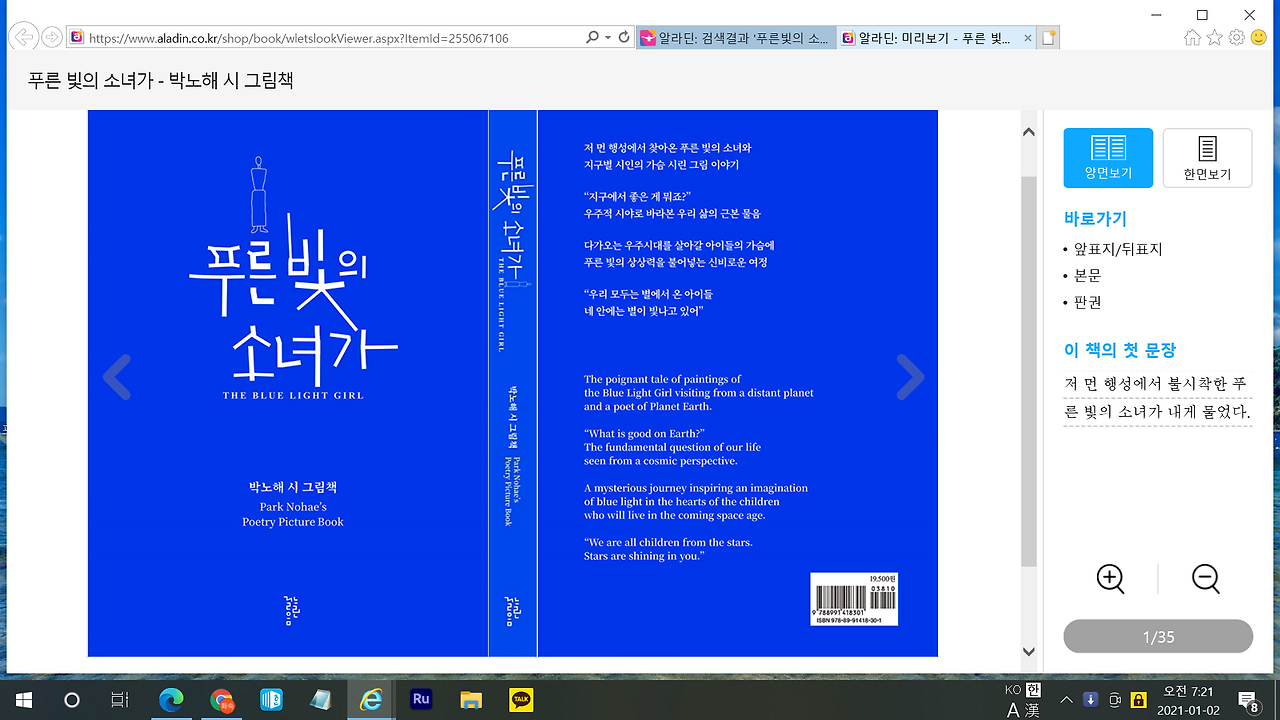 새해, 푸른빛의 소녀가 저 멀리 우주에서 나를 찾아온다면? 무슨 질문을 하고 무슨 이야기를 나눌까? 이 팍팍한 팬데믹 지구를 떠나 저 푸른빛 속 다른 행성으로 떠나자 제안한다면? 코로나도 경제도 지리멸렬한 일상도 다 버리고 푸른빛의 소녀를 따라 떠날까? 여기 남아 또 한 해를 살까? 다시 어떤 새해를 살고 싶은데?......