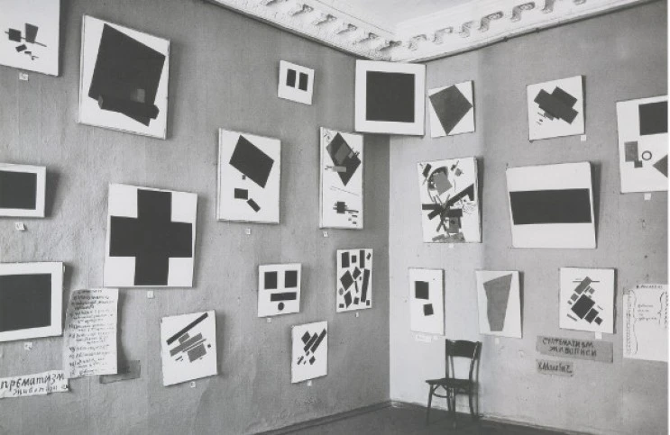 말레비치는 우크라이나 키예프 태생의 러시아 추상미술의 대표 화가다. 초반에는 인상주의 영향의 풍경화나 입체파처럼 그린 적도 있었다. 1915년 <0, 10>이라는 전시회를 통해 그는 자신만의 추상미술을 발표한다. 검은 사각형, 흰색 위의 또 다른 느낌의 흰색 사각형, 검은 십자 무늬 등 무채색 도형으로 가득한 전시회였다. 이후에 그는 지속적으로 사각형을 중심으로 한 추상화를 그리게 된다. 그에게 도형은, 특히 사각형이란 가장 순수한 정신세계를 상징했다.