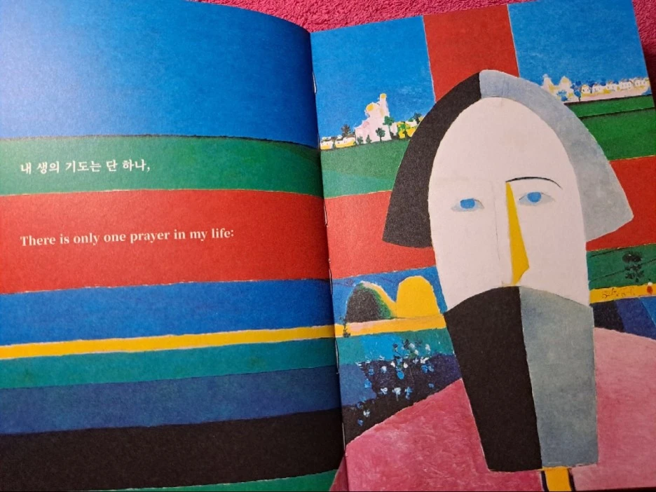 <푸른빛의 소녀가>의 시는 박노해가 썼다. 그림이 말레비치의 정신세계라면 시는 박노해 시인의 정신을 담고 있다. 이 두 작가의 예술 정신이 <푸른빛의 소녀가>로 만나 작품이 된 거다. <노동의 새벽>으로 알려진 박노해 시인을 지금은 노동자 시인으로만 기억하는 사람은 많지 않을 것이다. 오지 사진작가, 사진 시 전시회, 나눔 문화 시민 단체, 저술 활동..... 책 말미엔 시인의 자그마한 사진과 소개 글이 한글과 영어로 정리돼 있다. 그의 저서 목록도 함께.