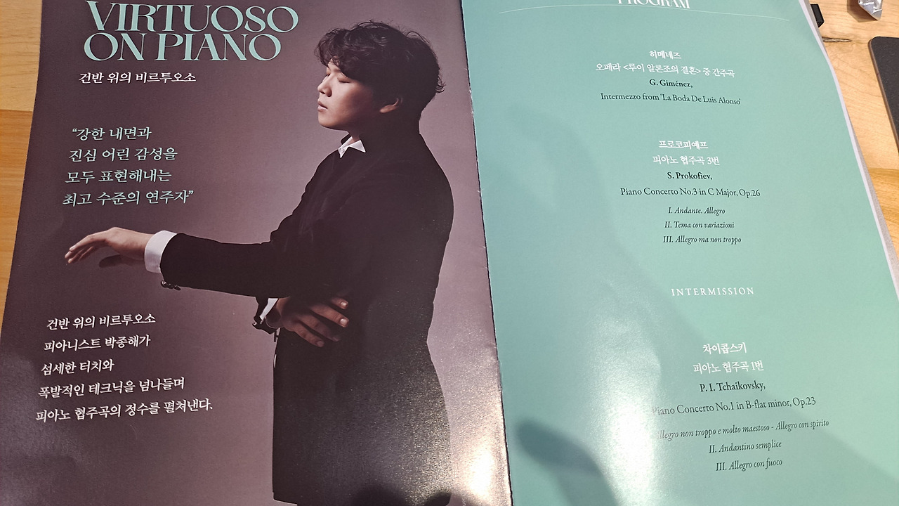 피아니스트 박종해는 대단했다. 젊은 남성 피아니스트를 '건반 위의 비르투오소'라 이름한 것부터 그랬다. 엄청나게 대단한, 미친 연주자라는 말이렸다. 비르투오소(virtuoso)란 이탈리아어로 거장 보다 더 큰 칭호, '미쳤다!"라는 감탄사고, ‘악마’의 점잖은 표현이라 하겠다. 파가니니 처럼 기교가 아주 뛰어난 연주자가 테크닉뿐 아니라 깊이와 지식도 갗춘 사람이란 말이다. 원래 말 뜻에 덕(virtue)이란 뜻이 있단다. 정말 미친 연주였다. 앵콜을 두곡이나 더 연주했으니 덕 맞다.