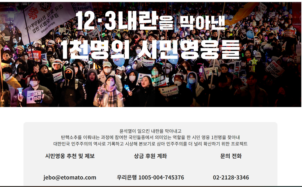 뉴스토마토 '12.3내란을 막아낸 시민영웅' 프로젝트 담당입니다.