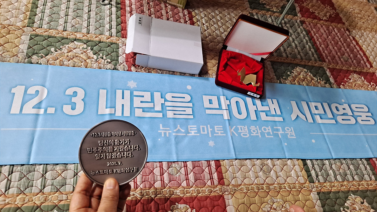 뉴스토마토 K평화연구원에서 보내온 메달은 내란을 막아낸 모든 시민의 것