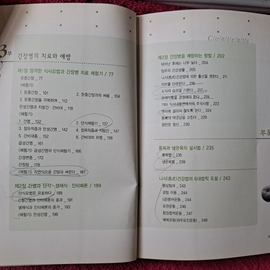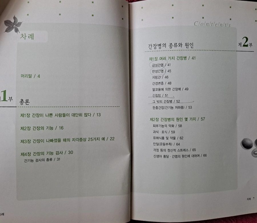 <간장병 나는 이렇게 고친다>는 간장병에 집중한 책이다. 간장병의 종류만 옮겨 보겠다. 급성간염, 만성 간염, 지방간, 간경변증, 알코올에 의한 간 장애, 간장암, 그 밖의 간장병, 둔중 간장(간 기능 저하증) 목차에 나오는 간장병의 원인 몇 가지를 보자. 피부 기능의 약화, 과식·포식, 유해식품 및 약물, 안일(운동 부족), 걱정 등의 정신적 스트레스. 원인을 보면 해결책이 보인다. 코오다 의학이 왜 소식과 단식을 중심으로 하는지 알 수 있다.