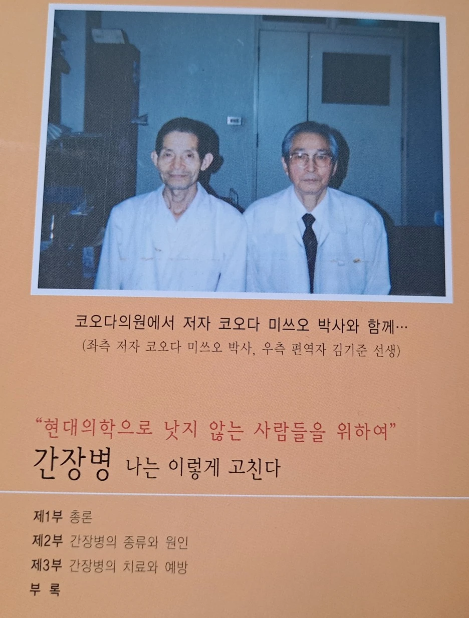코오다 미쓰오 박사(1924~2008)를 조금만 알고 넘어가자. 그는 어릴 때부터 병약하여 자주 휴학해야 했다. 간장병, 위장병 등의 만성병으로 고생하다가 26세 때에 11일간의 단식을 행하여 건강을 회복했다. 단식에 숨겨진 치유력을 체험하면서 니시 건강법에 과학을 접목하여 연구하게 됐다. 오사카대학 의학부에서 영양학도 연구했다. 1955년 야오시에서 커오다 의원을 개원했다. 니시의학을 한 단계 발전시킨 코오다 의학을 체계화하여 50년간 병원에서 임상으로 수만 명의 환자를 치료하는 성과를 올렸다.
