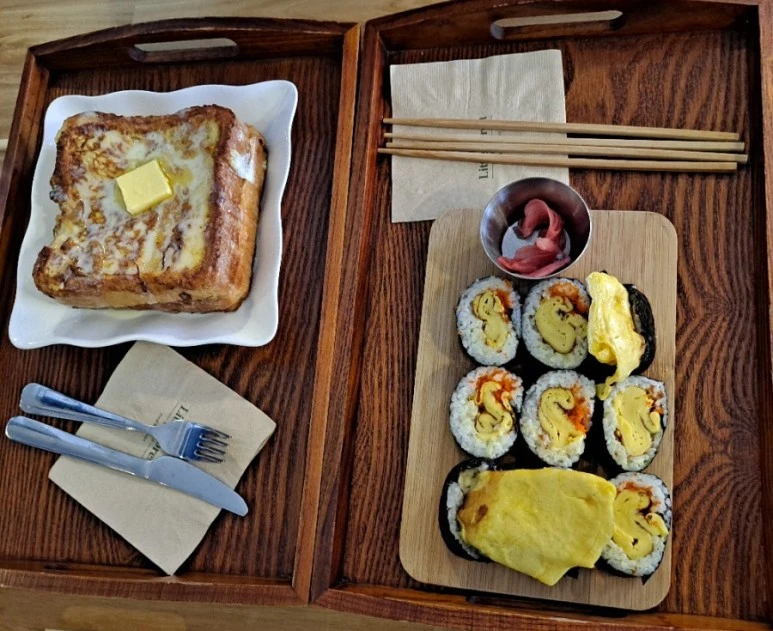 어떤 한나절은 전혀 계획에 없는 그림으로 완성되기도 한다니까요? 한 사람이 한 사람을 만나면 그런 신기한 일이 많이 일어나니까요. 아침에 집에서 나갈 땐 딸 바래주고 부지런히 걸어 돌아오려니 했죠. 그런데 친구를 오랜만에 만났죠. 눈사람을 만났죠. 놀며 동네를 걸었겠죠. 평소 저는 자연식 하네 건강식 하네 하는 사람 아니겠습니까. 더구나 이 겨울에 2주 단식까지 한 후라 늘 자연식을 하고 있었죠. 그런데 친구랑 커피 마시고는 브런치도 먹었답니다. 계란말이 김밥에 프렌치 노스트. 세상에 어쩌면 채소 하나 없이 한 끼를 먹고 살기도 하나 봐요 사람이? 친구가 즐겨 찾는 곳이라니 분위기 느껴볼 겸 고민하지 않고 함께 했죠 뭐. 가격이 5,000원 안 되니 그나마 착한 편이라 해야겠죠? 친구는 수다 중에 저와 함께 책 모임도 하고 싶다네요? 어떤 한나절은 그렇게 흐른다니까요.