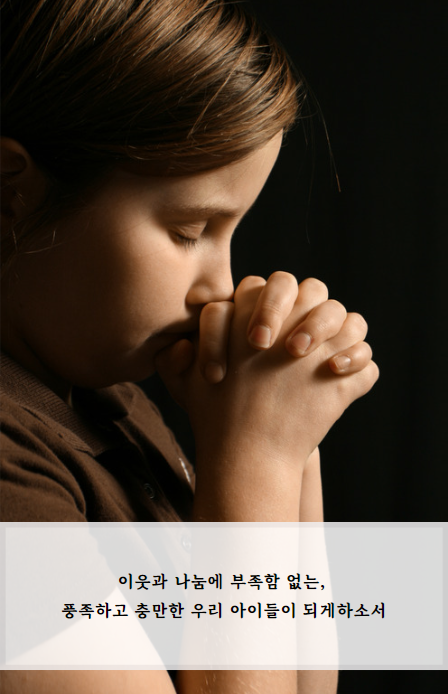 이웃과 나눔에 부족함 없는, 풍족하고 충만한 우리 아이들이 되게 하소서