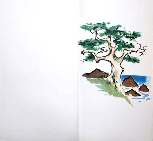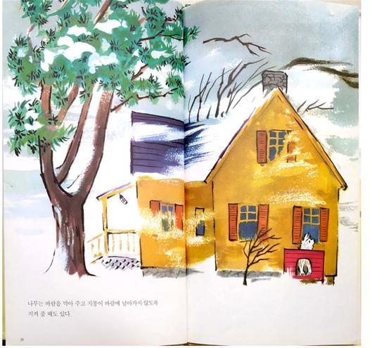 아무래도 한국 바닷가 근처에서 흔히 볼 수 있는 해송(곰솔, 소나무) 같다는 생각이 제일 먼저 들었다. 이 그림은 표지와는 전혀 색감이나 선이 달라 생뚱맞다는 생각이 든다. 그림책을 여러 차례 읽으면서 제일 의문스러웠던 부분이 왜 작가가 이 나무를 그린 것일까? 다양한 나무 종류를 보여주고자 한 것인가? 아직도 정확한 답을 찾지 못했다.