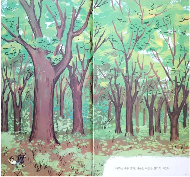 [나무는 좋다]는 나무줄기의 이미지를 살리기 위해 세로로 긴 판형이다. 그림책에서는 그림책 형태인 판형도 중요하다. 그림책 이야기에 따라 판형이 조금씩 달라진다.