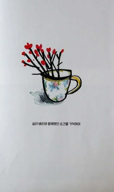 면지는 하늘색 바탕에 하얀 물감이 희미하게 묻어 있는 모습이다. 처음에는 무슨 그림인가 했는데, 글을 다 읽고 보니 눈이 내리는 하늘을 그린 그림이라는 걸 알게 되었다. 표제지 그림에서는 버스에서 내려 걷는 아이의 모습이 보인다. 그리고 헌사 내용이 있는 헌사 페이지 그림은 컵에 빨간 나무가 꽂혀 있다. 이 빨간 나무의 결말에도 등장하면서 뒷이야기의 서사를 유추하게 한다.