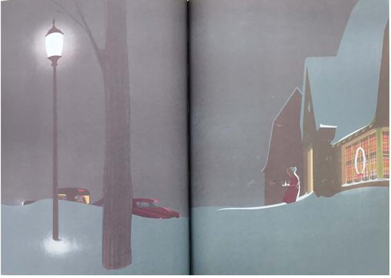 이 장면은 글 없이 그림으로만 되어 있다. 할머니가 따듯한 무언가를 준비해서 밖으로 나오는 모습이다. 그런데 무심하게도 견인차가 도착하여 차를 가져가며 그 가족들은 떠나고 있다. 그들은 전혀 할머니가 나온 것을 보지 못했다. 할머니는 떠나는 그들을 보며 아쉬워하지 않는다. 대신 뜻밖의 큰일에도 크리스마스 즐기는 그들을 보면서 할머니 자신이 무엇을 깨달았는지 알게 된다.