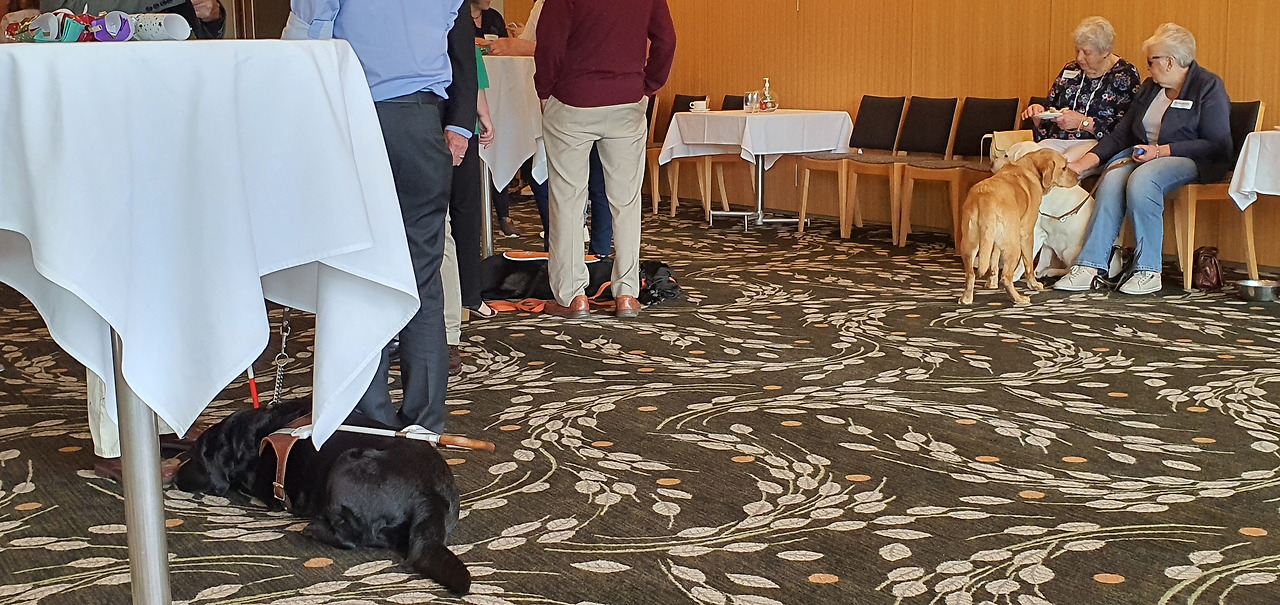 안내견과 봉사자들이 어우러져 편안하게 담소를.