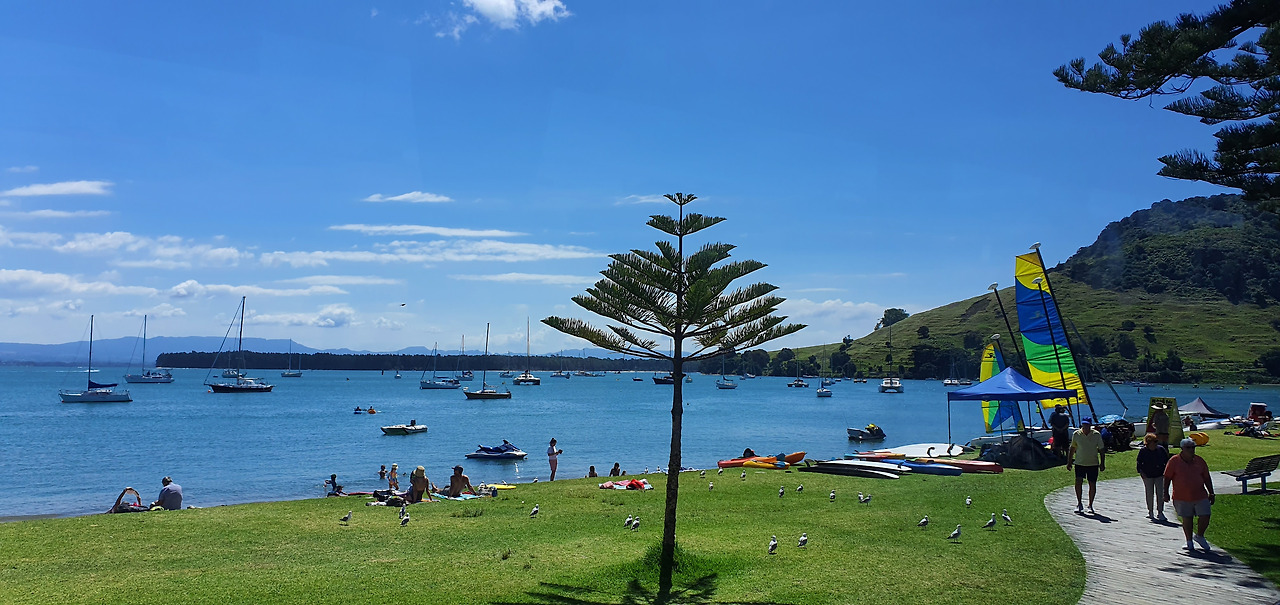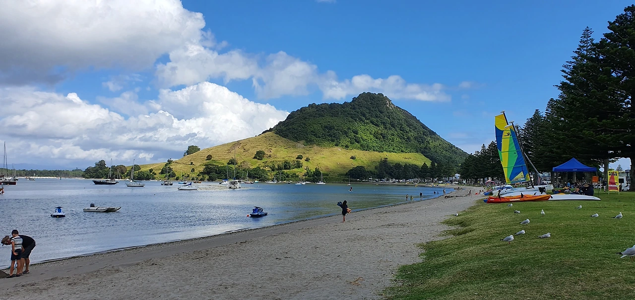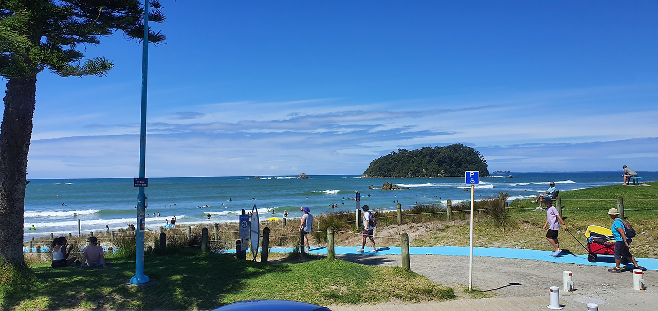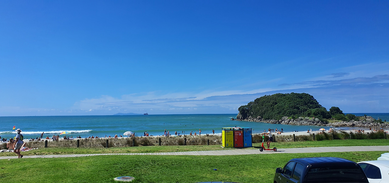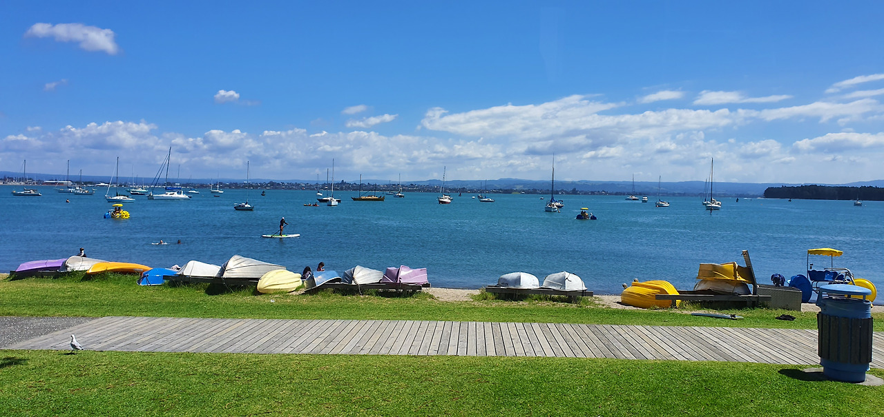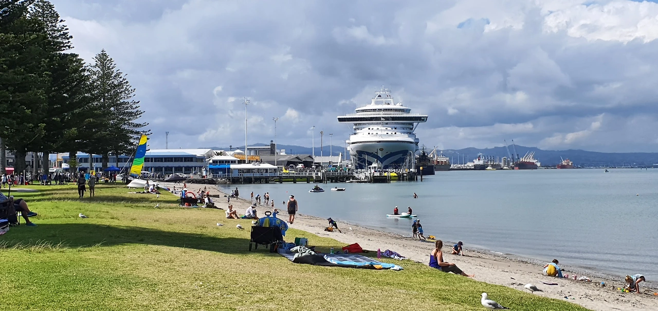 이 날 아침 일찍 도착한 타우랑가 (Tauranga)는 항구와 도심이 붙어있어 크루즈에서 내리자마자 그대로 이어진 바닷가 산책로를 걸을 수 있었다. 날씨가 청명하고 온화해서인지 아침인데도 물놀이를 하거나 잔디밭에서 피크닉을 하는 사람들이 여기저기 있었다.