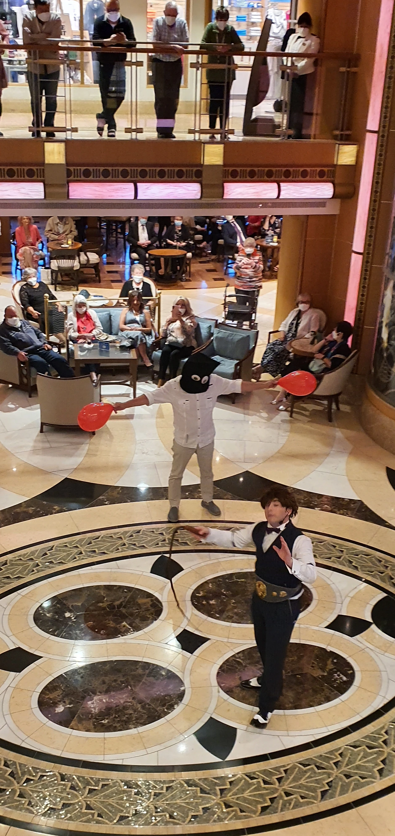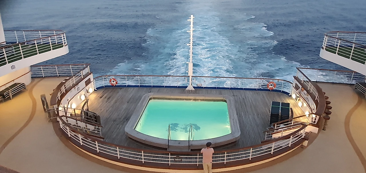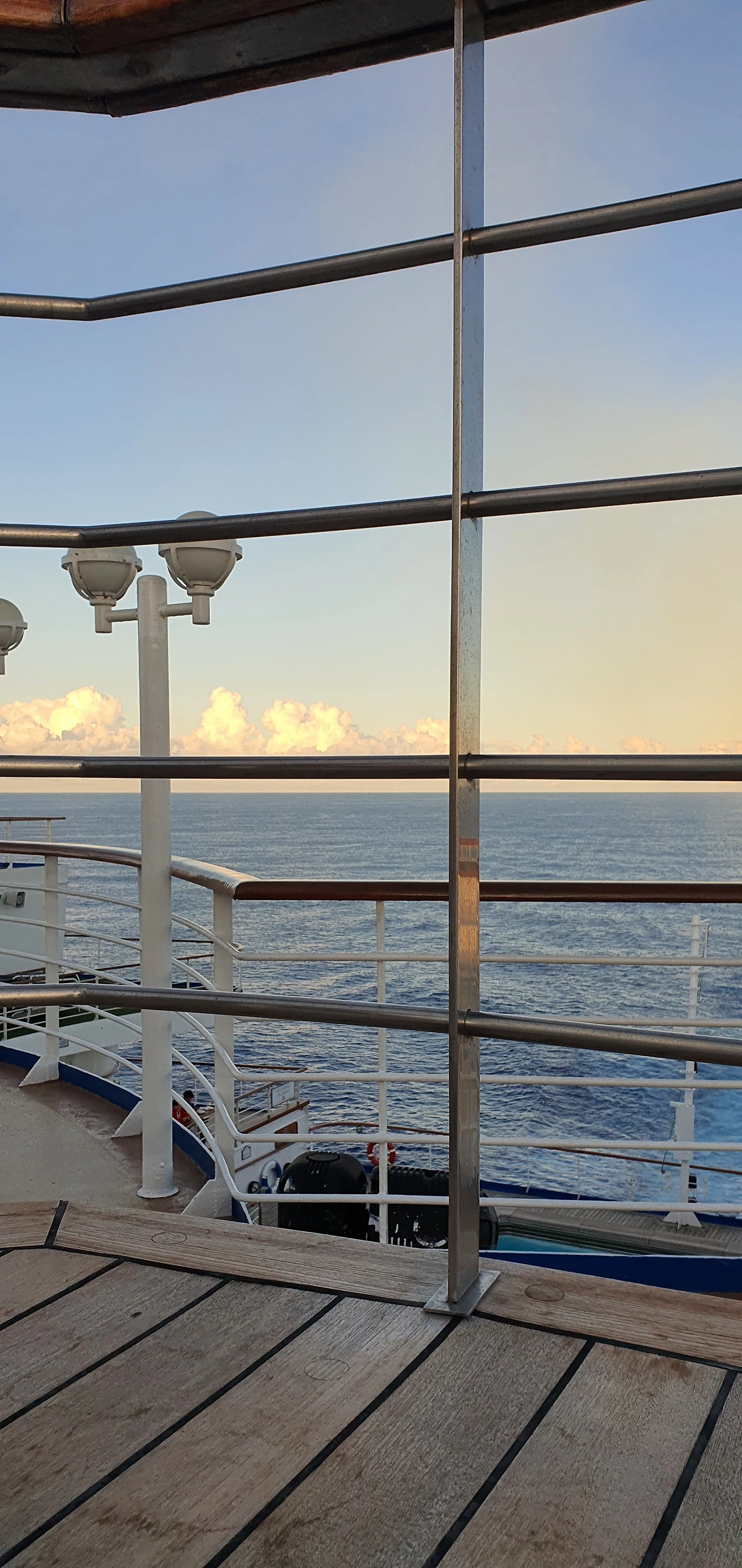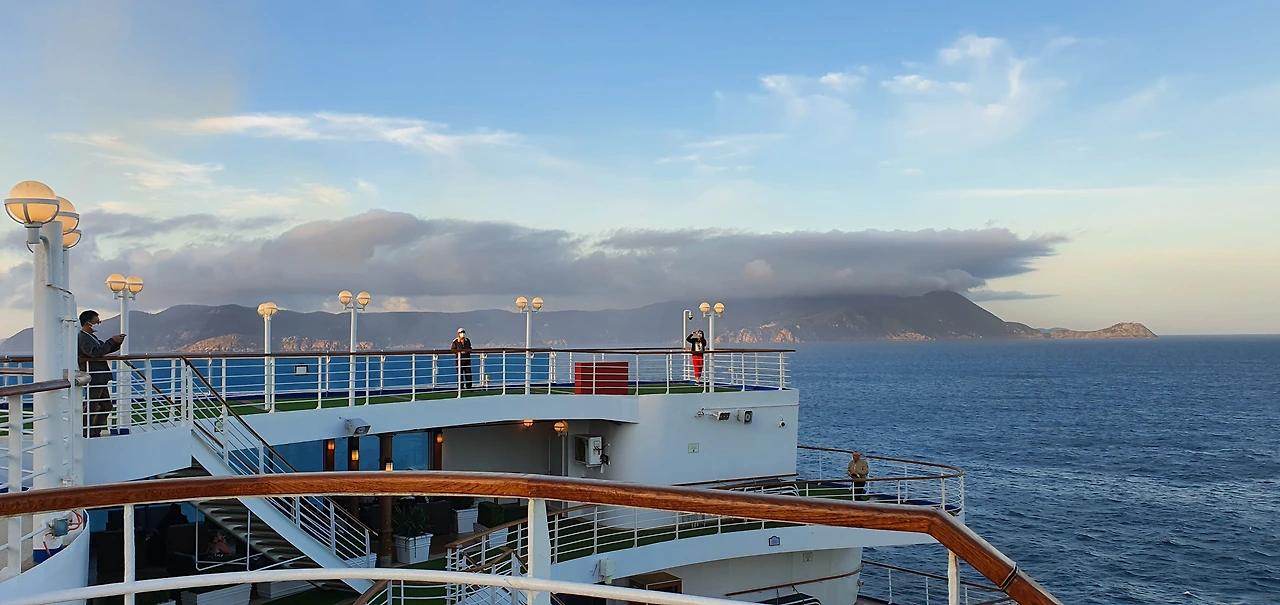 여행을 시작할 때 의무적으로 코로나 검사를 했고 모두 배 안에서 마스크를 썼지만 (호주는 이미 1년 전부터 마스크를 해제했기 때문에 마스크를 다시 쓰는 생활은 좀 낯설었다.) 지난 며칠간 코로나가 번져가는 듯했다. 이와 관련한 공식적 뉴스는 없었지만 프로토콜이 한 단계 높아져 위생 관리 규칙이 엄격해졌고(자가 테스트, 식전 손 씻기 등) 격리 안내를 했으며 가끔 어떤 공간은 확진자가 지나갔는지 출입을 금지시키고 청소를 열심히 했다. 배 안이 알게 모르게 조용해져 갔다.