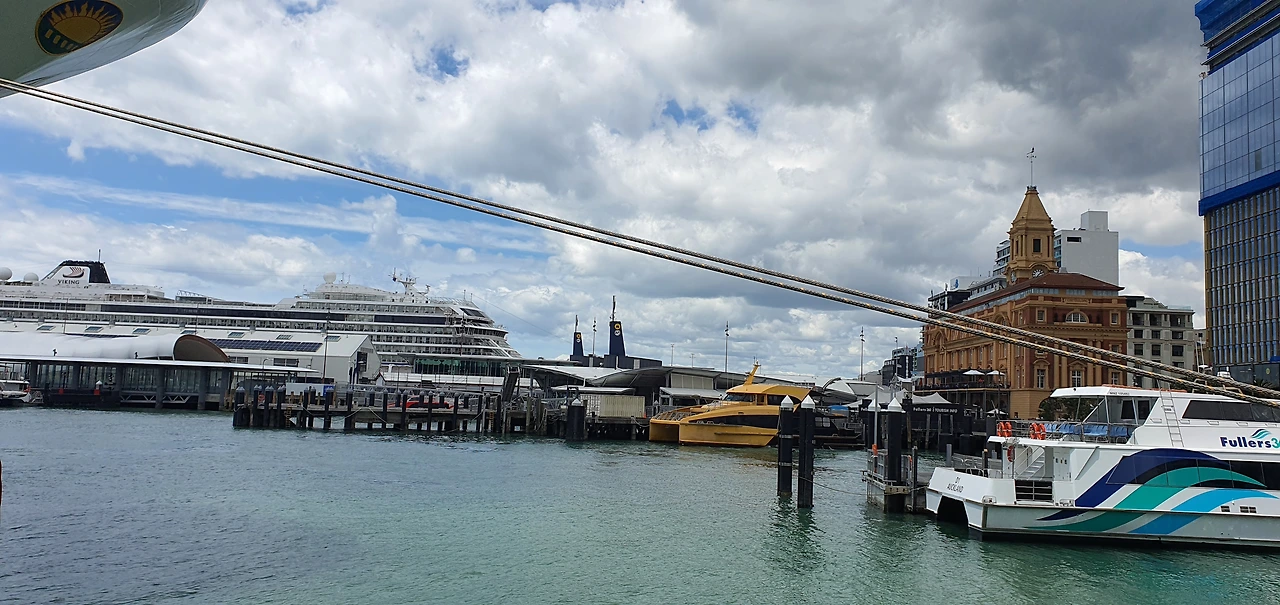 이날은 크루즈 6일간의 기항지 중 마지막인 오클랜드항에 도착했다. 아침에 눈을 떴을 때 깜짝 놀랐다. 창밖으로 이웃이 보였기 때문이다. 바다에 떠있는 크루즈인데 마치 아파트 이웃 동을 마주하듯 코 앞에 건물이 보였다. 창문을 열면 대화도 가능한 거리였다. 항구에 이토록 바짝 붙어 건물들이 지어져 있다니.. 왜 그런 거지? 그러고 보니 시드니항도 건물들이 바다로부터 꽤 가까이 있기는 했다. 잘 알려진 시드니 오페라 하우스도 그렇다. 육지에서 바라보아 그 거리를 크게 느끼지 못했던 것 같다. 이런 거주지엔 누가 살까 싶었다. 항구에서 일하는 이들이 살기엔 편할 듯하다.