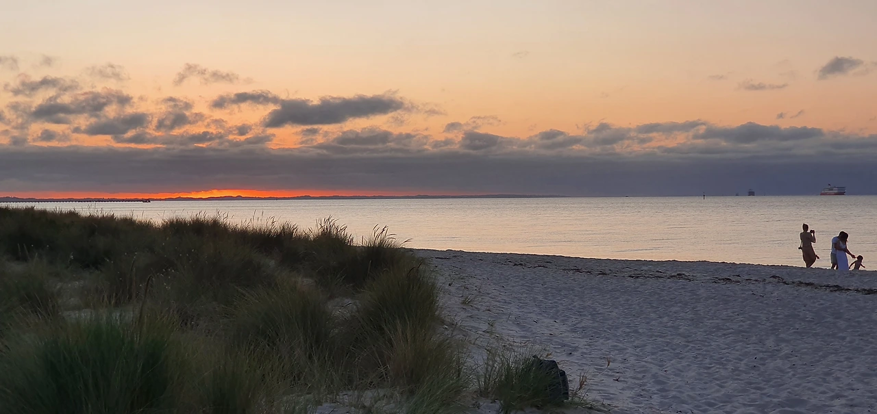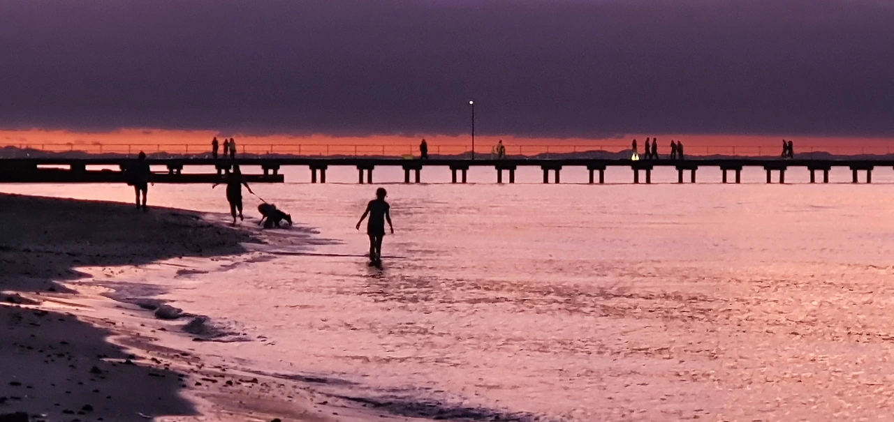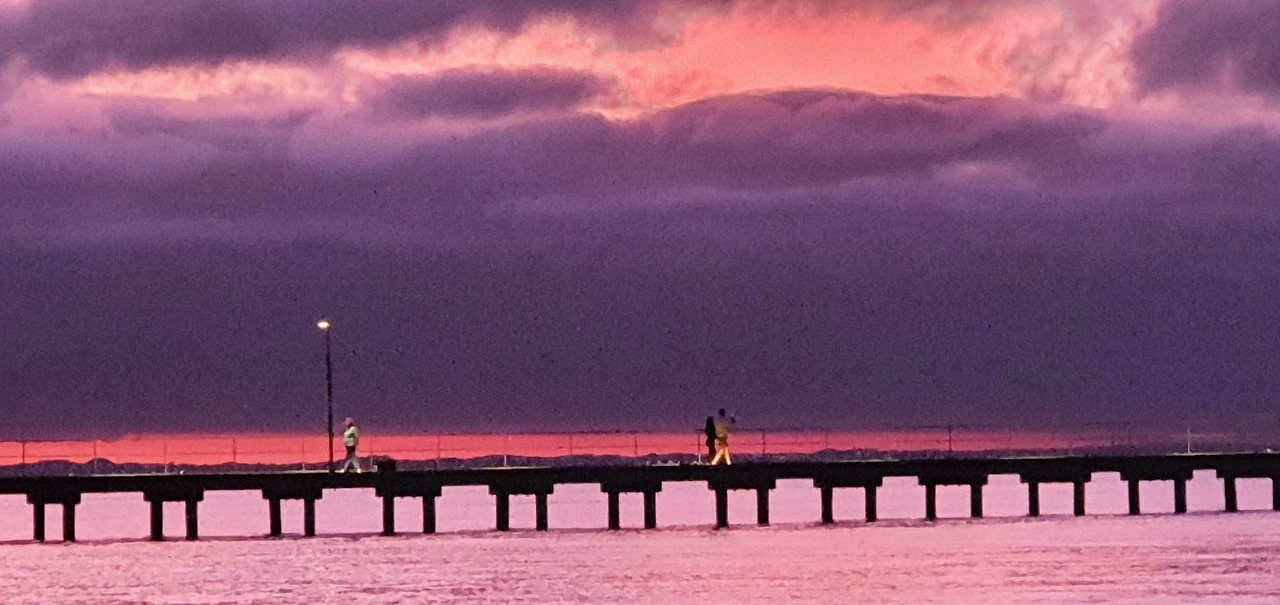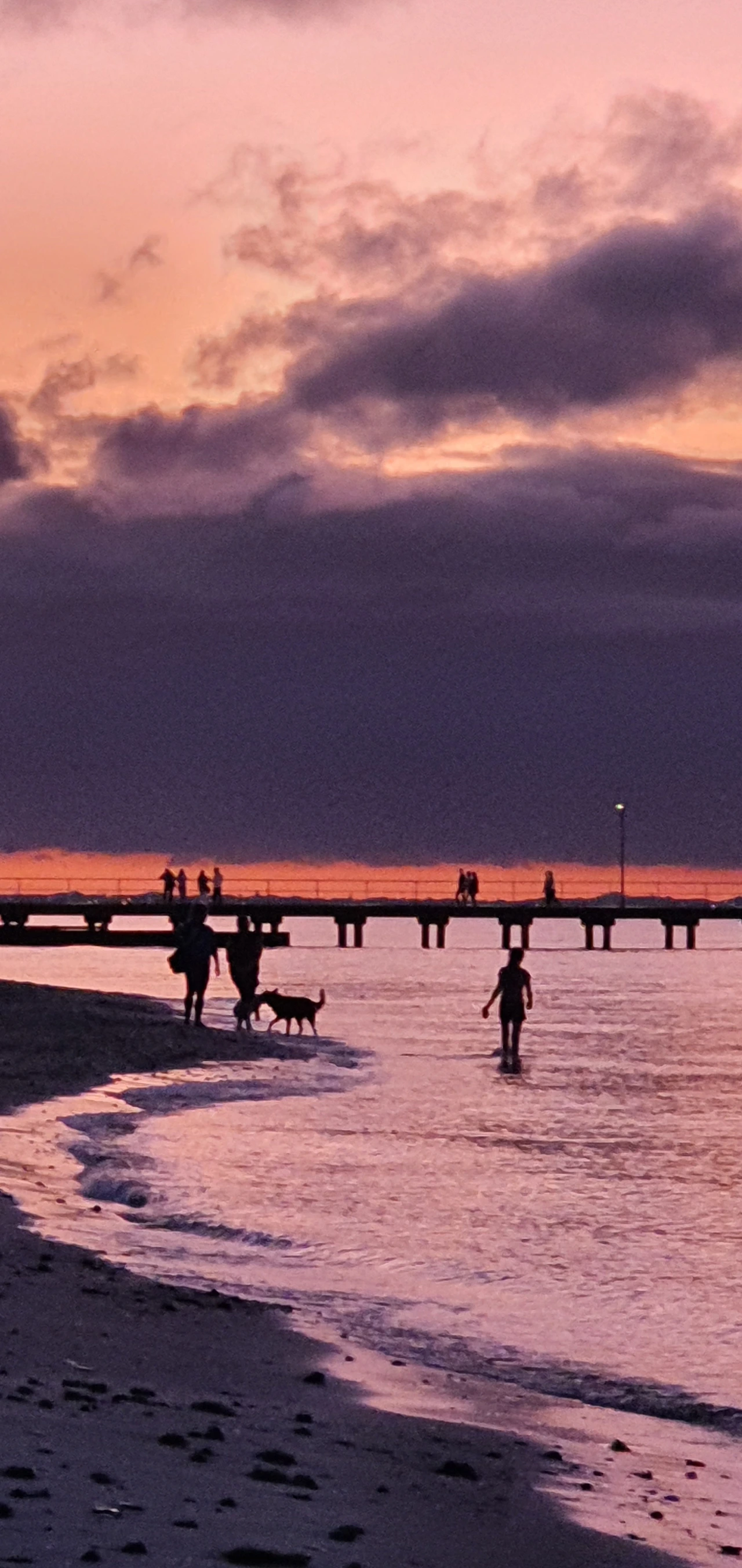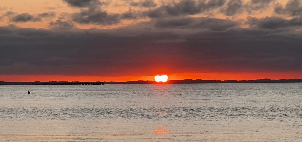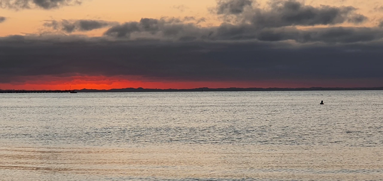아들을 생일 파티하는 친구집에 내려준 뒤, 로즈버드 바닷길을 걸었다. 지는 해가 구름과 수평선 사이에 젤리빈처럼 물려 있다. 달콤한 시럽이 터져 흐르듯 주변도 붉게 물들었다. 사람들은 물속에서 수영을 하다가 보트를 타고 노를 젓다가 혹은 개를 데리고 산책을 하며 지는 해를 감상했다.