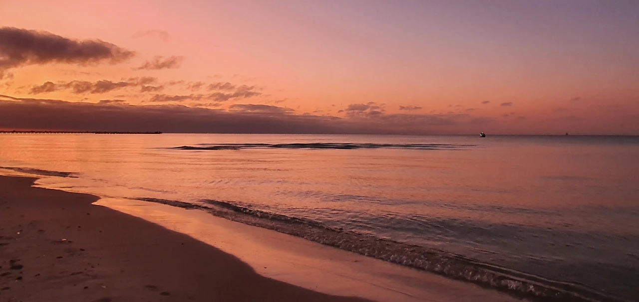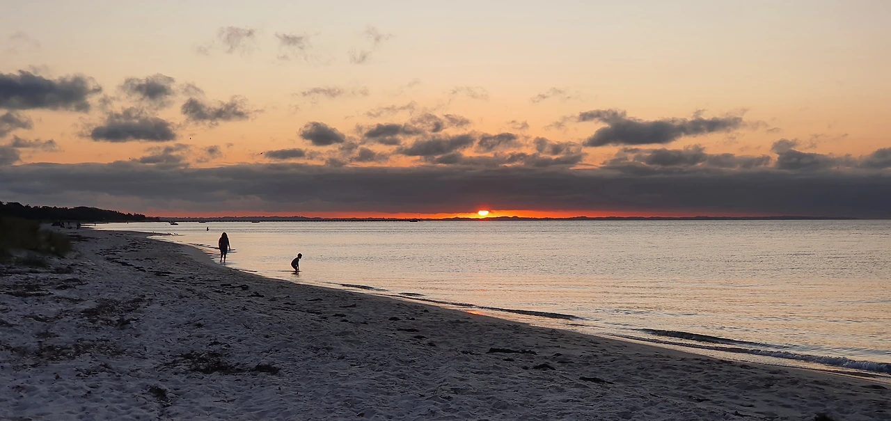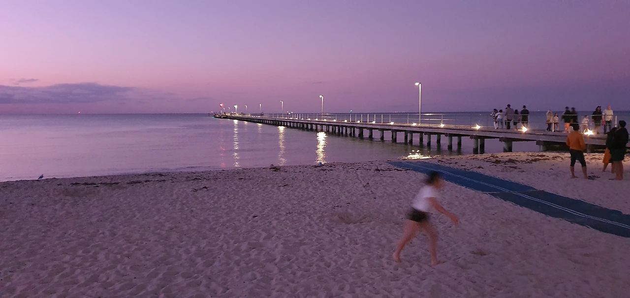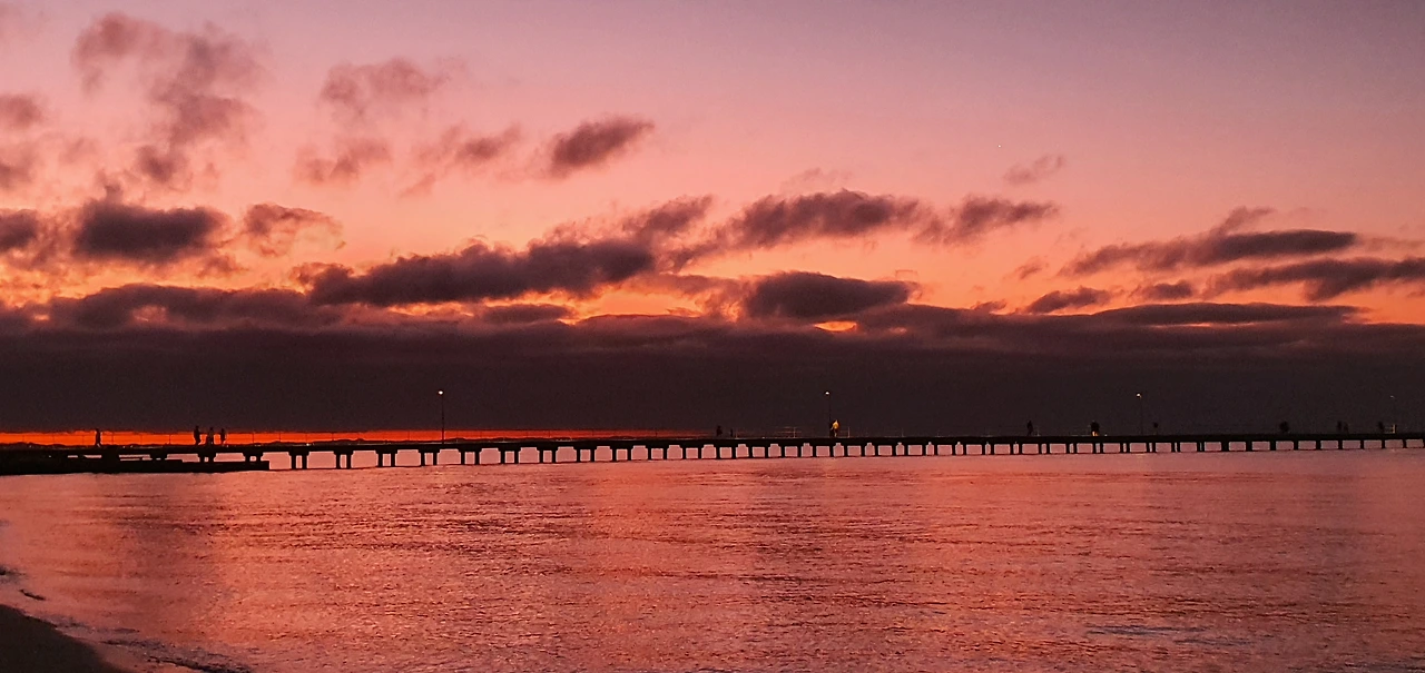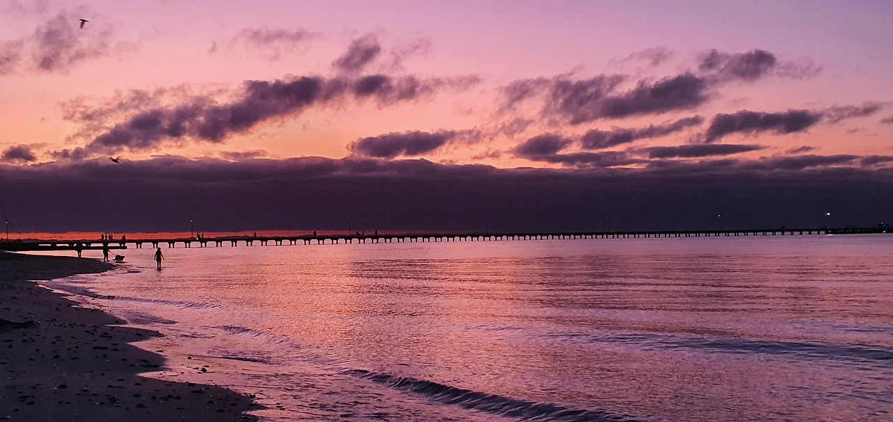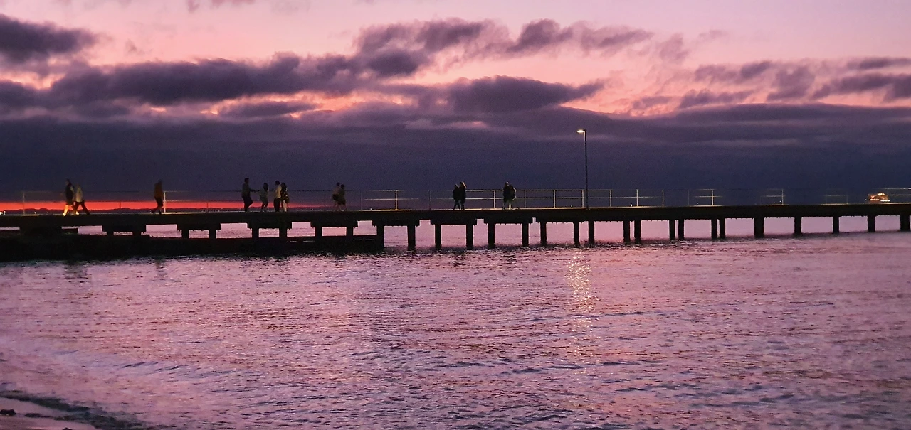 아들을 생일 파티하는 친구집에 내려준 뒤, 로즈버드 바닷길을 걸었다. 지는 해가 구름과 수평선 사이에 젤리빈처럼 물려 있다. 달콤한 시럽이 터져 흐르듯 주변도 붉게 물들었다. 사람들은 물속에서 수영을 하다가 보트를 타고 노를 젓다가 혹은 개를 데리고 산책을 하며 지는 해를 감상했다.