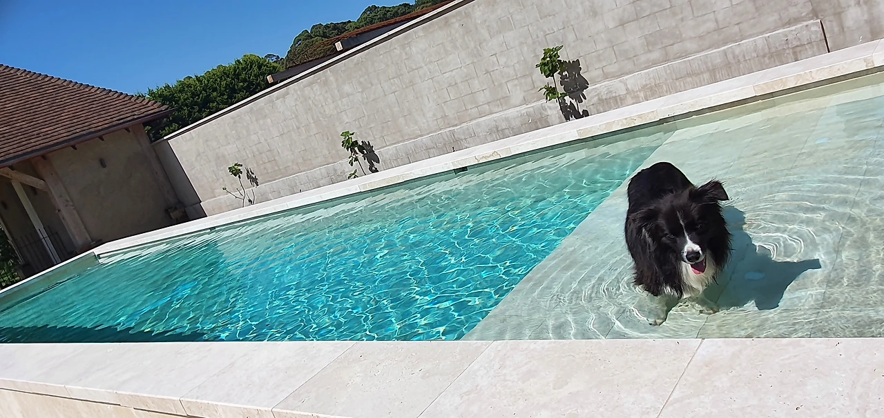 따뜻한 햇볕을 즐기다가 수영장에 첨벙 뛰어드는 그녀의 개가 세상에서 제일 행복한 듯했다.