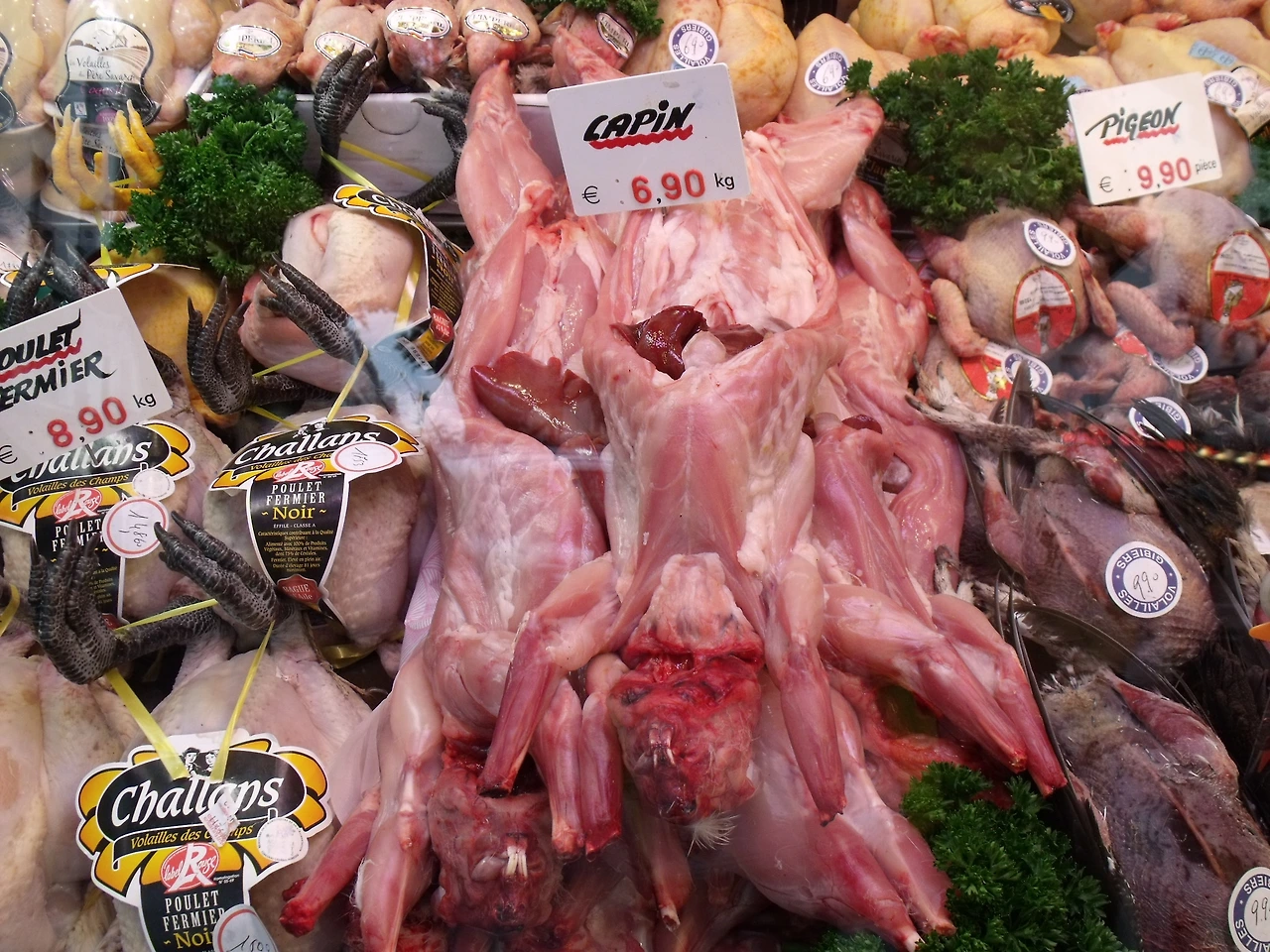 프랑스인들은 토끼고기를 좋아하나 보다. 그래도 정육점에 털부숭한 토끼를 진열해 놓을 줄이야.