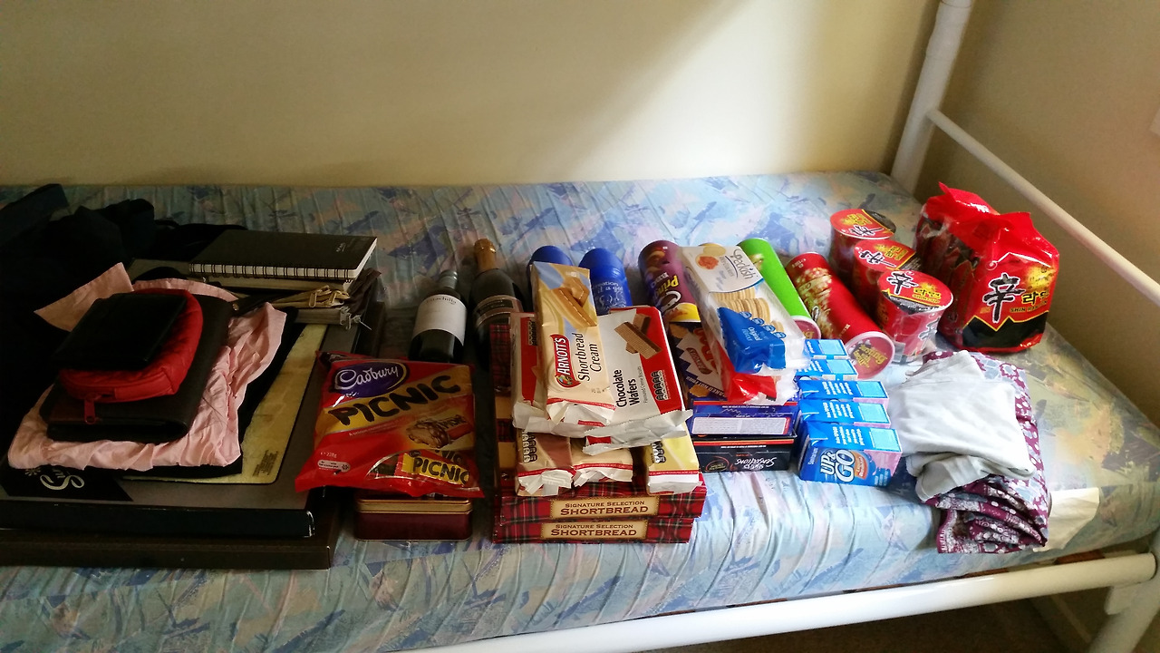지인에게 필요한 걸 얘기하라 했더니 한사코 몸만 오란다. 그는 호주에 올 때마다 중고가게에서 옷이며 생필품을 한가득 사갔었다. 수건이며 옷이며 가방이며 노트며 집에서 안 쓰는 새 물건들을 대략 챙겨봤다. 과자류도 많이 사갔는데, 요긴하게 두루 나누어 주었다. 라면도 평소와 달리 비상식량으로 싸갔는데 이 또한 요긴하게 다 먹었다.