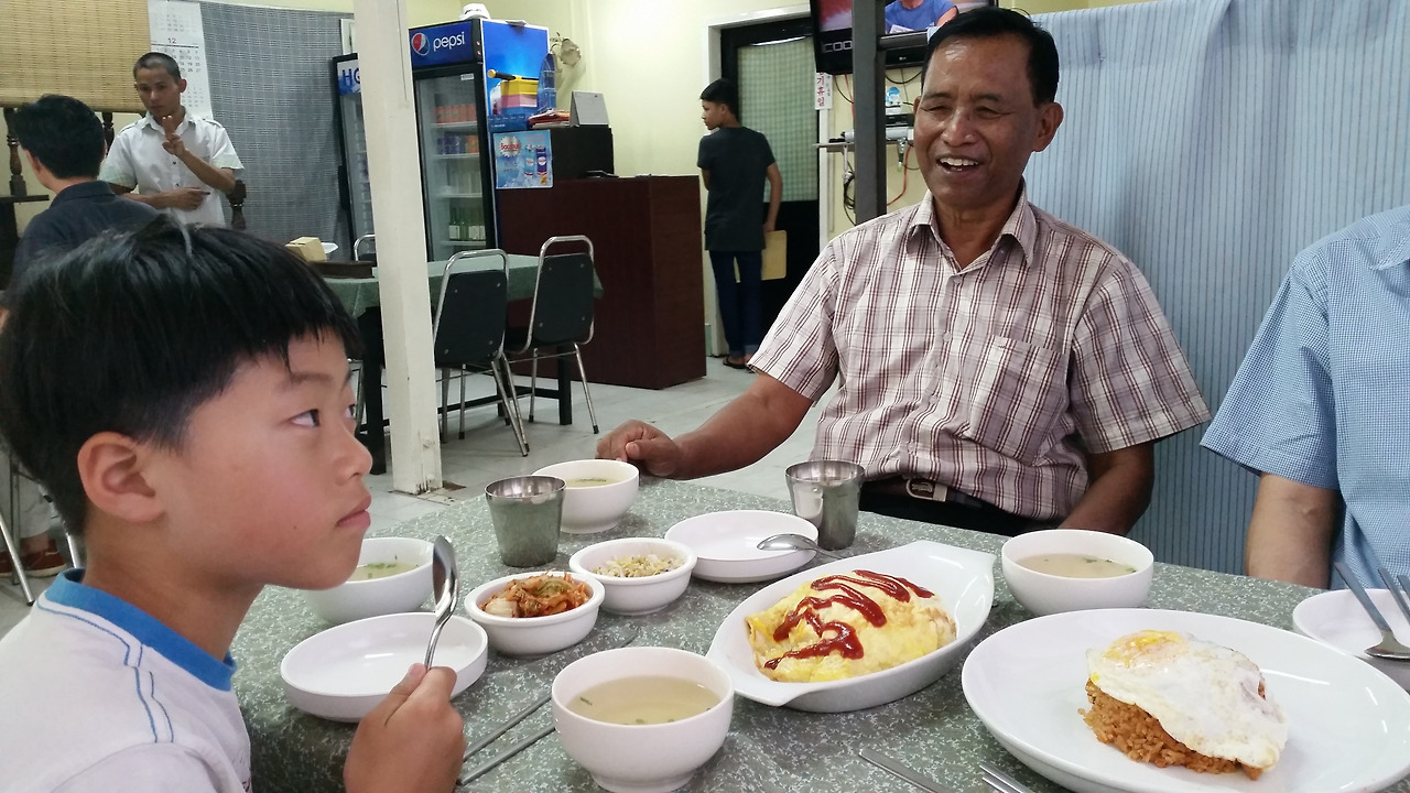호텔 근처엔 놀랍게도 지인도 몰랐던 한국식당이 있었다. 미얀마에서의 첫 식사를 한식으로 하다니. 여행 중엔 한식을 갈구하기보다는 현지 음식에 집중하는데 말이다. 게다가 여행의 마지막 식사도 이곳에서 했는데 팔팔하던 아들이 막판에 장염으로 열이 끓어 힘들어했을 때 멀지도 않은 이곳에서 익숙한 밥을 끼니로 먹으며 정말 감사했다. 가격은 김밥 2-3천 원, 백반 5천 원 정도였는데, 현지 수준으로는 매우 비싼 편에 속했다.