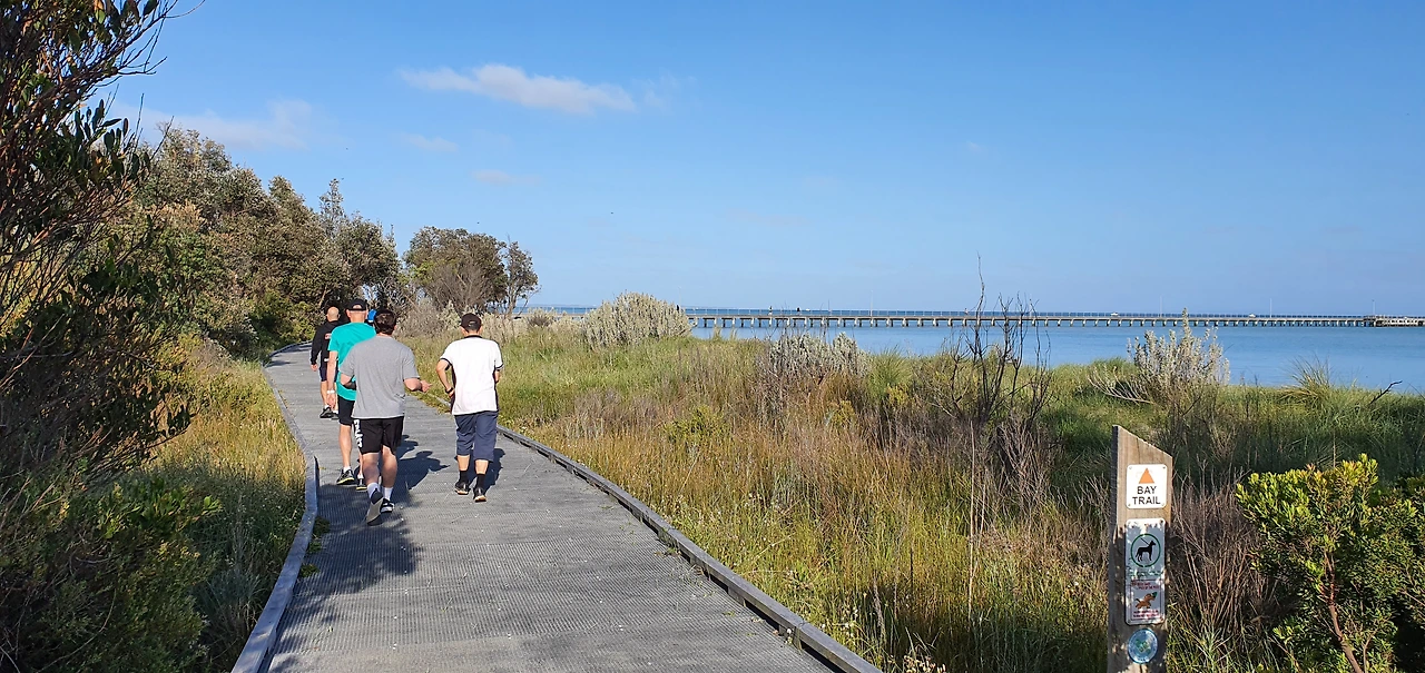 주관자가 2.5킬로 바닷가 산책길을 두 번 도는 코스를 간략하게 소개하고 처음 온 사람들을 박수로 환영한 뒤 모두들 출발선으로 자리를 옮겼다.