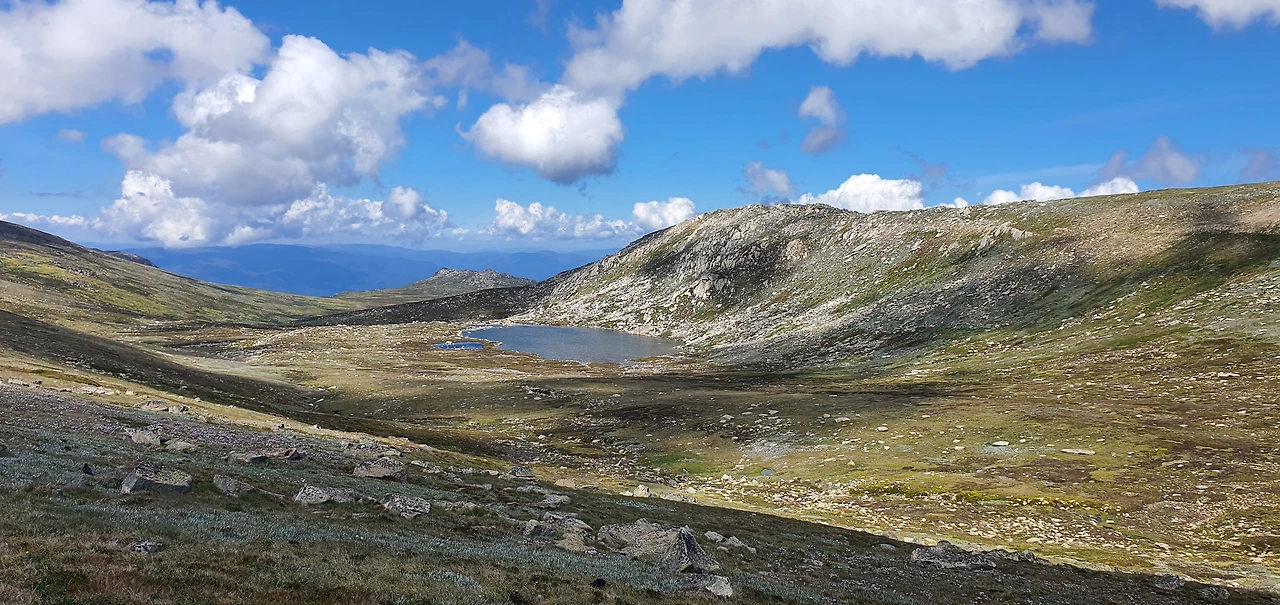 하늘은 푸르게 맑고 하얀 구름이 뭉게뭉게 떠다니는데 간간히 시원한 바람도 솔솔 부는 최상의 날씨였다. 광활한 산맥들 사이로 난 등산로는 나무나 철판으로 정비가 되어 있기도 하고 포장이 안된 돌길 흙길도 있어 지루하지 않았다. 오르락내리락 굽이굽이 돌다 보면 호수도 나오고 시냇물도 흐르고 폭포도 나타났다.