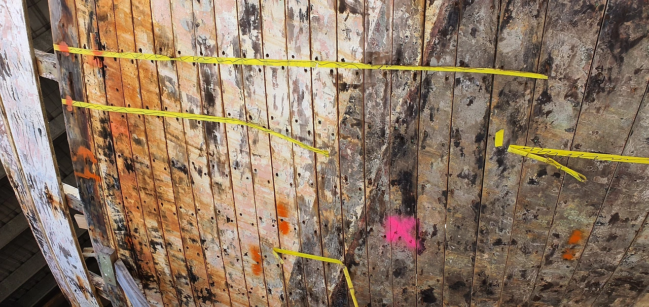 또 다른 차이점은 배를 뒤집어 밑바닥부터 작업을 한다는 것이다. 물에 잠길 배 밑부문을 지어 올린 뒤 대형 크레인을 동원해 배를 작업장 밖으로 끌어내어 위아래를 뒤집는 작업을 하는데, 여러 장비 대여부터 이미 수십 톤에 달하는 반절의 배를 뒤집는 일을 하루 종일 하는 것이 매우 어렵고 긴장되는 작업이라 했다.