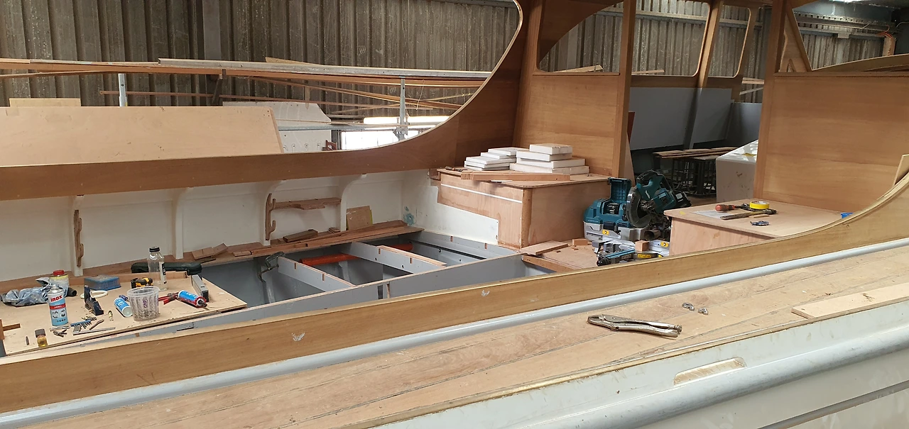 그러니까 지금 이 작업 중인 보트는 아직 갈길이 멀어 보이지만 80% 이상의 어려운 공정을 끝낸 보트의 틀을 대략 다 갖춘 것으로 본다는 것이었다. 배선 배수 엔진이 들어갈 공간을 일일이 디자인하고 직접 만드는 일까지 장인 혼자 책임을 지고 다한다. 부분 부분 다른 전문가들이 장인의 지시대로 설치 작업을 보조한다.