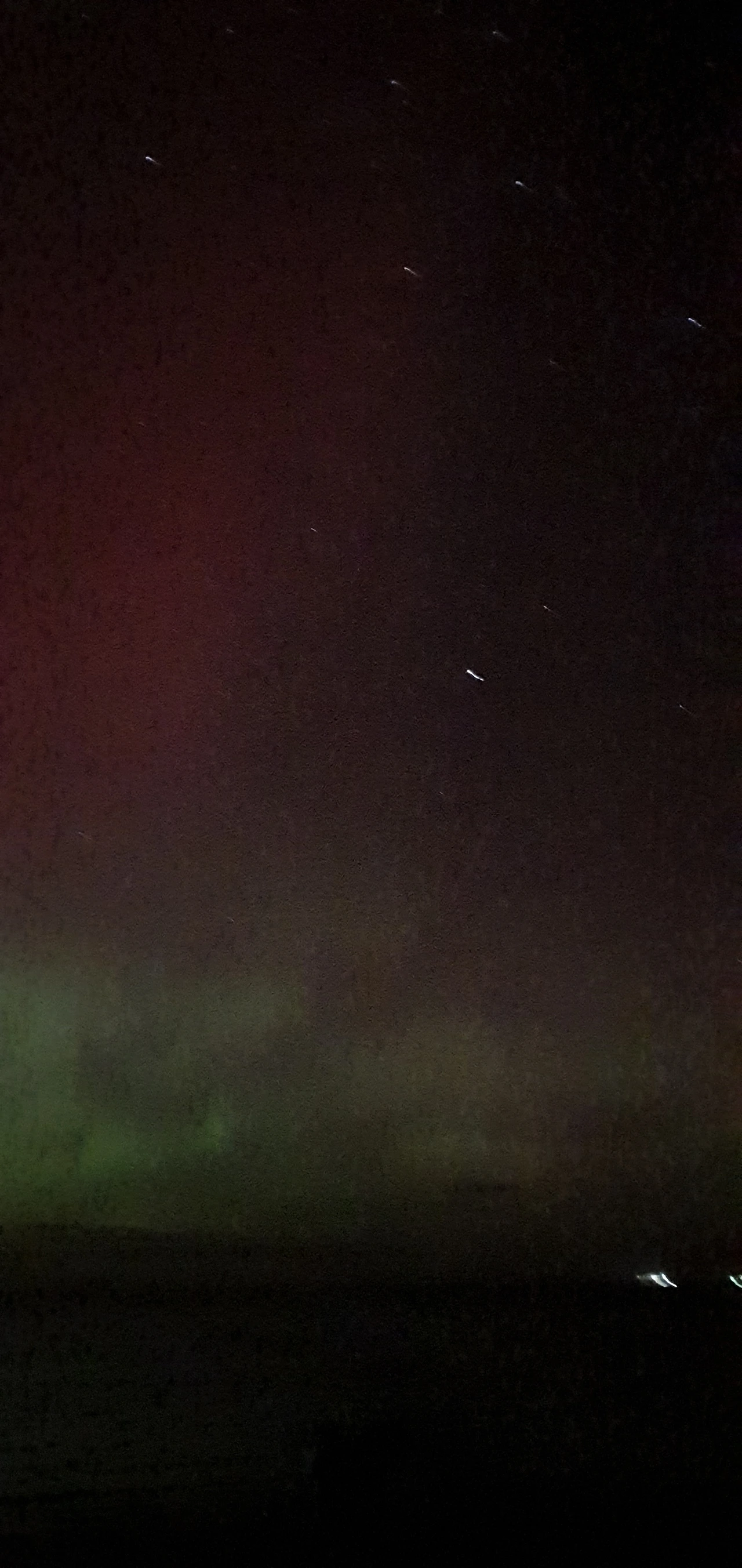 조용해야 할 주차장은 역시 사진작가들과 이런저런 사람들로 평소보다 분주했다. 날씨도 생각보다 온화했기에 춥고 으슥한 깊은 밤에 잘 관측된다는 잔지식을 갖고 있던 나는 더 기대를 낮출 수밖에 없었다. 잠시 후 오른쪽 언저리에서 희뿌연 무언가가 보였다. 철 지난 삼성 S10 폰으로 프로 기능을 동원해 갖은 수를 써서 찍자니 붉은색 초록색의 무언가가 잡히기 시작했다.