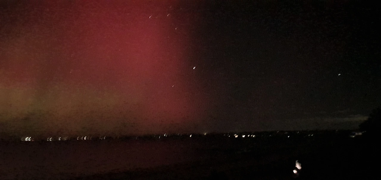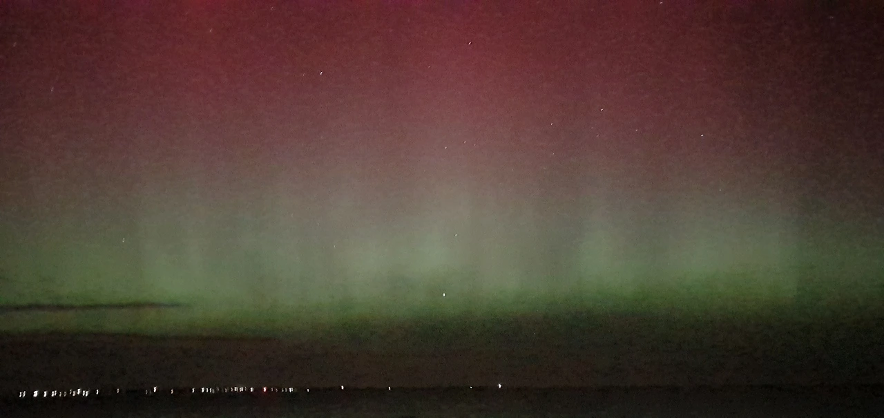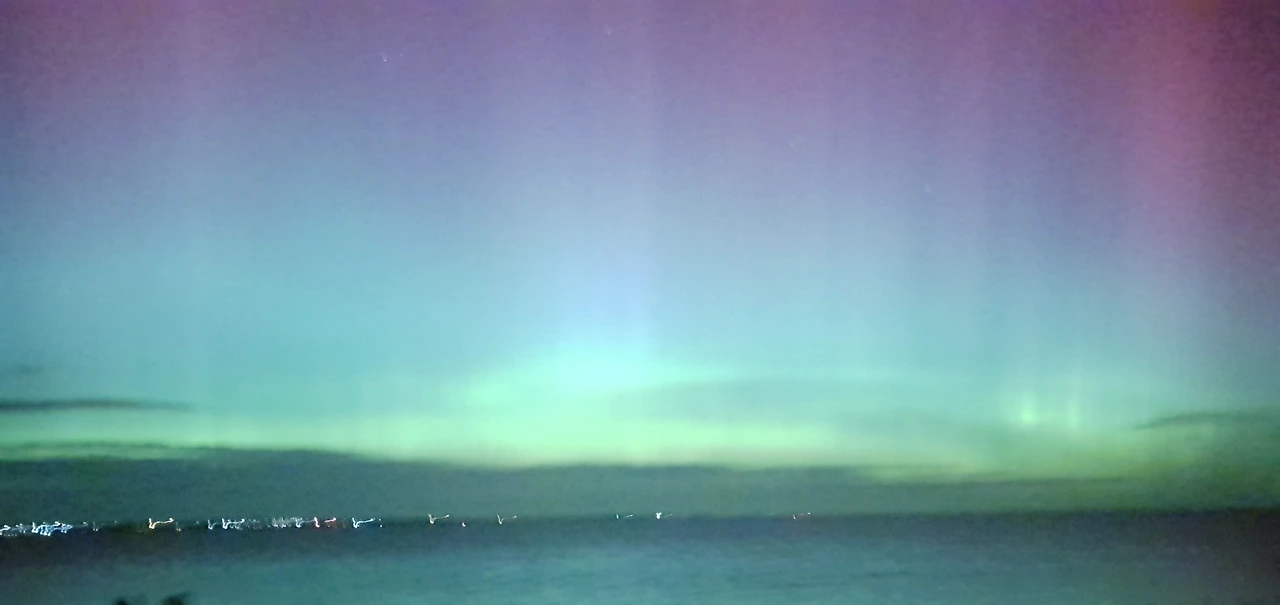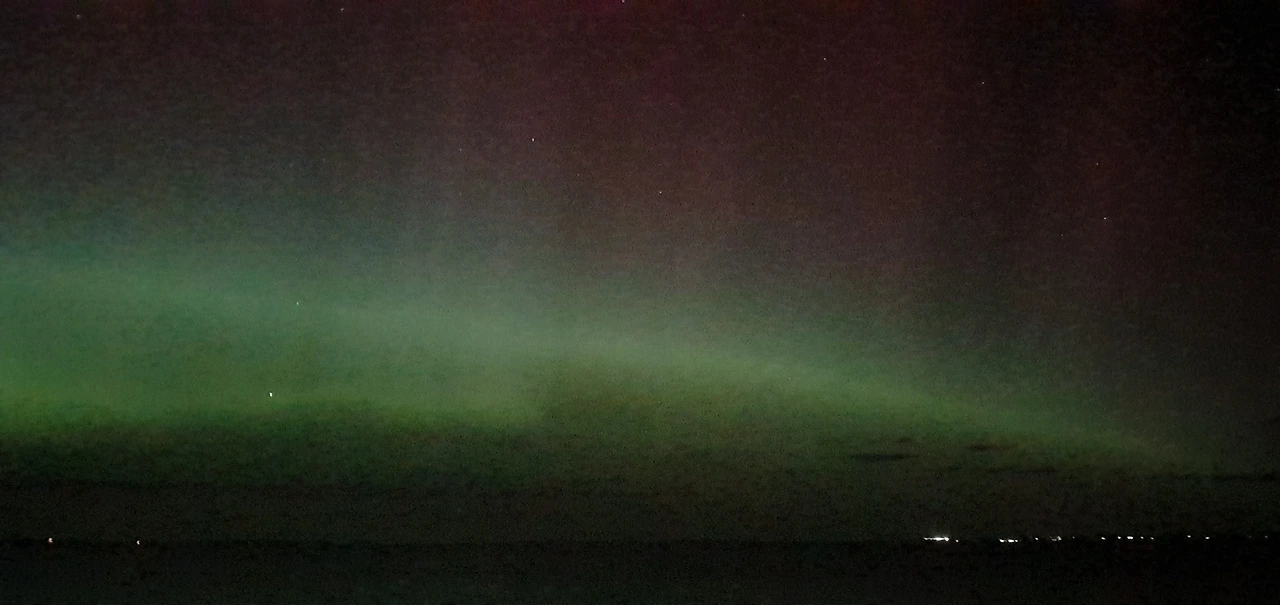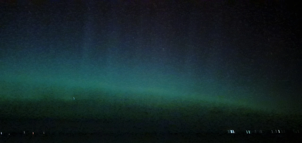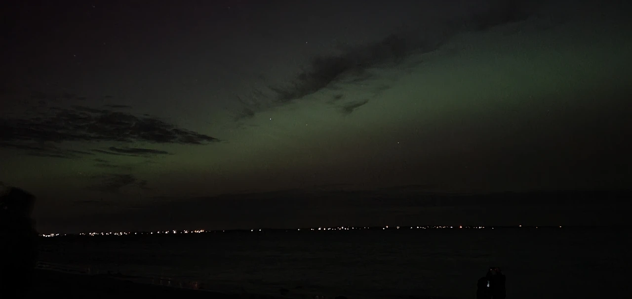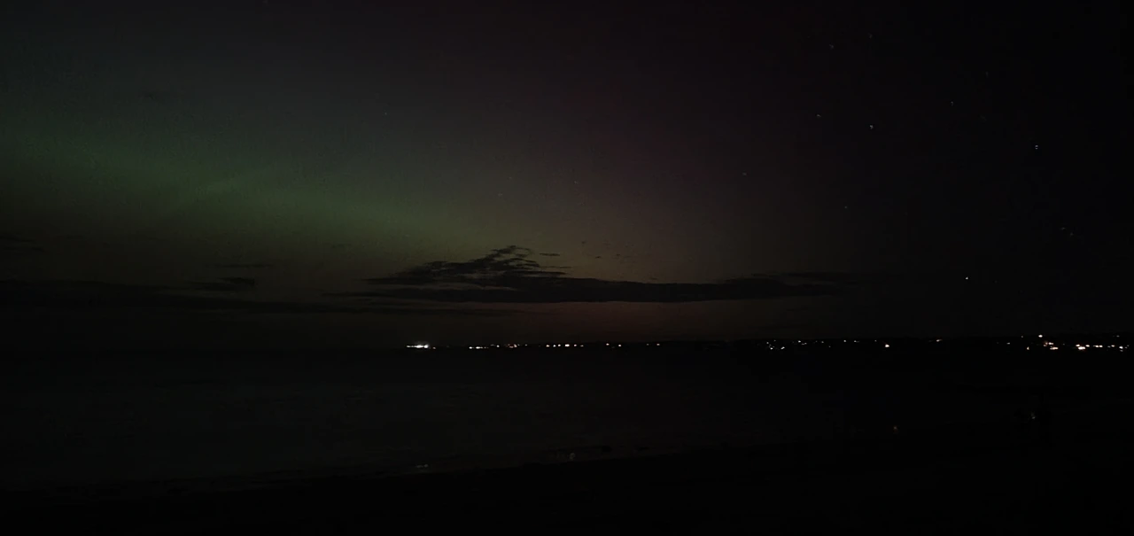 그래서 어제도 큰 기대를 한건 아니었다. 아들을 친구 생일 파티장에 내려 주고 남편과 함께 두어 시간을 기다려야 하는 상황이었다. 한국과 달리 늦은 저녁 갈 만한 곳이 있지도 않고 집에 갔다가 다시 나오기도 애매한 상황이라 주변 바닷가에 차를 세워두고 뉴스에서 말한 대로 오로라가 뜨는지 보자는 심드렁한 분위기였다.