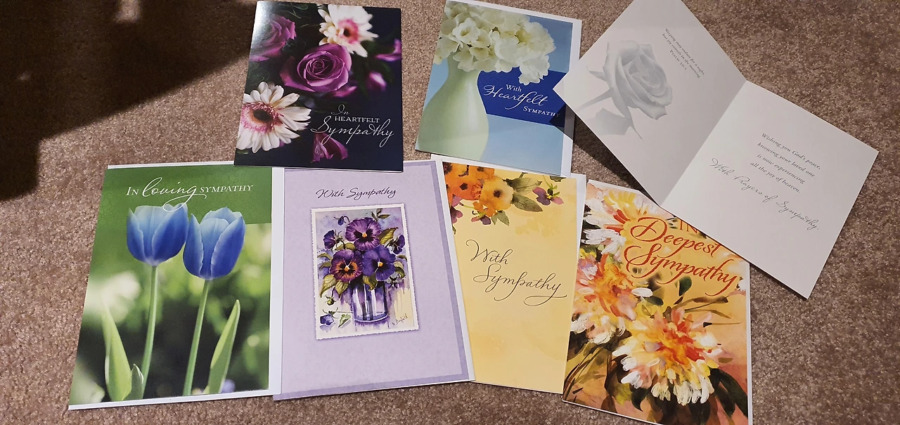 가까운 지인들은 한 손으로 가볍게 들 수 있을 크기의 꽃다발을 들고 오는 경우도 간간이 있고 위로의 메시지가 담긴 카드를 꽃과 함께 전달하거나 우편으로 보낸다. 꽃은 형형색색 고인이 좋아했던 것들로 고른다. 카드 파는 가게에 가면 생일 축하 카드만큼 흔하게 다양한 디자인의 장례식용 카드를 구할 수 있다.