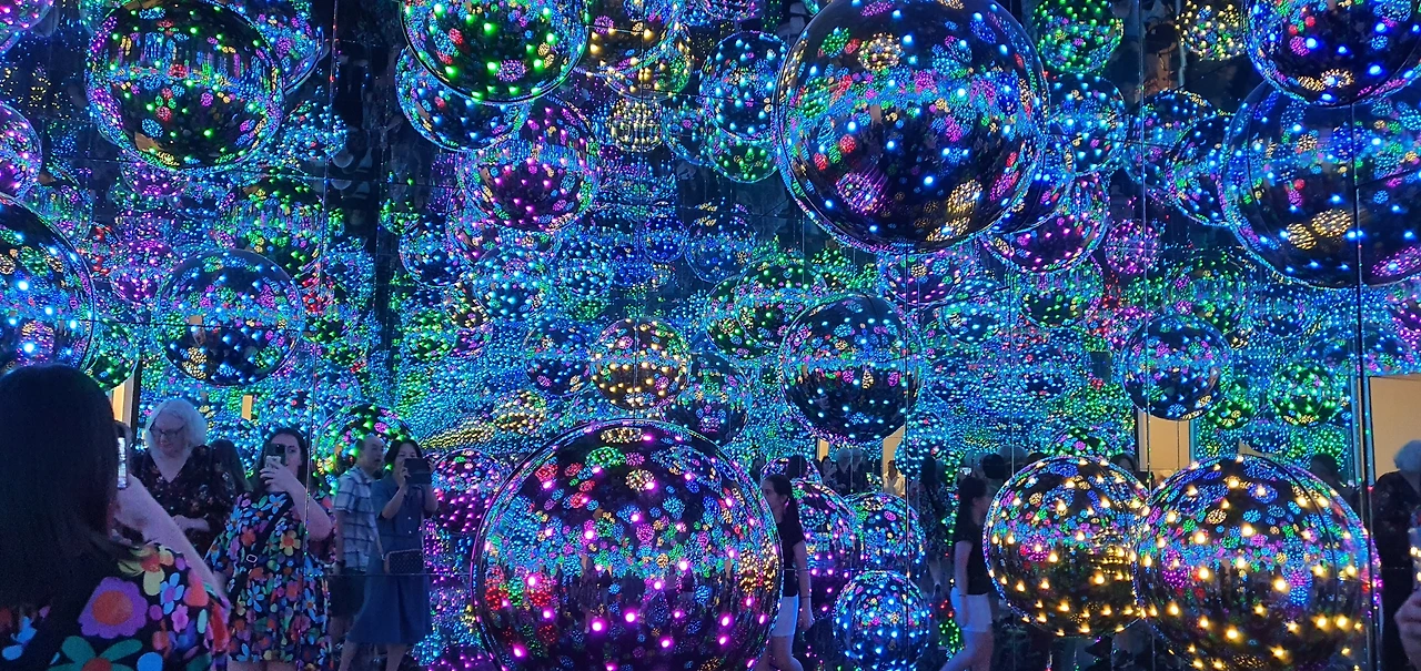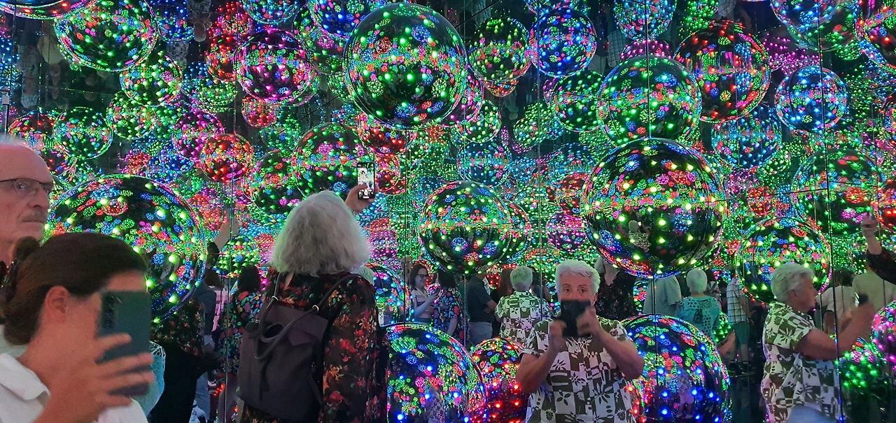 그렇게 몇 개의 방을 지나자 본격적으로 점의 세계가 나타났다. 노란 방, 빨간 방, 샹들리에 방, 거울방... 각기 다른 주제의 방들을 체험하기 위해 긴 줄을 서야 했다. 어떤 방들은 제한 시간이 있어서 가이드의 안내대로 들어갔다가 재빨리 사진 몇 장 찍고 나오기도 했다. 그래도 방마다 색다른 세계가 있어 긴 줄을 마다하지 않고 섰고 짧은 체험 시간도 불평하지 않았다. 신기한 발상들로 지루하지 않았고 웃음이 절로 나올 만큼 어떤 작품들은 재미있었다. 아무리 번잡하고 인파가 몰려도 각자 작품에만 몰두해 자기들만의 시간을 가질 수 있을 만큼 작품마다 흡인력이 대단했다.